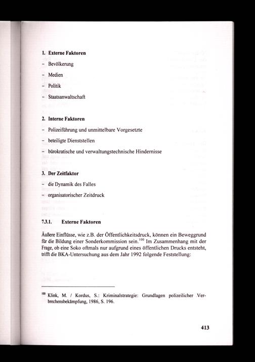 Äußere Einflüsse, wie z.B. der Öffentlichkeitsdruck, können ein Beweggrund für die Bildung einer Sonderkommission sein.'®° Im Zusammenhang mit der Frage, ob eine Soko oftmals nur aufgrund eines öffentlichen Drucks entsteht, trifft die BKA-Untersuchung aus dem Jahr 1992 folgende Feststellung: