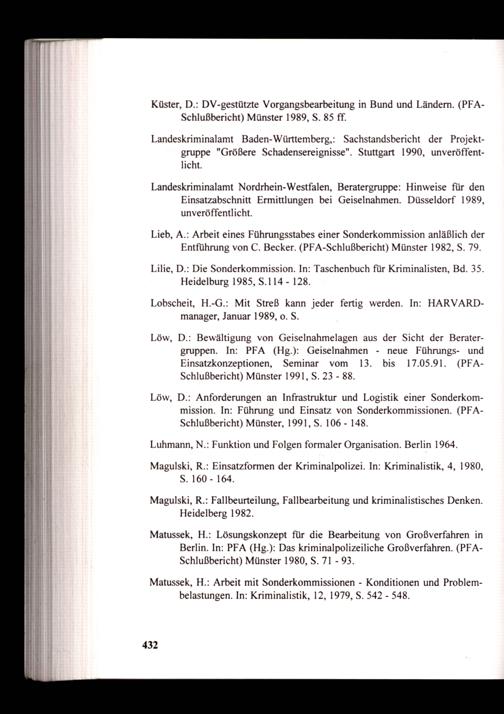 Lilie, D.: Die Sonderkommission. In: Taschenbuch für Kriminalisten, Bd. 35. Heidelburg 1985, S.114- 128.
