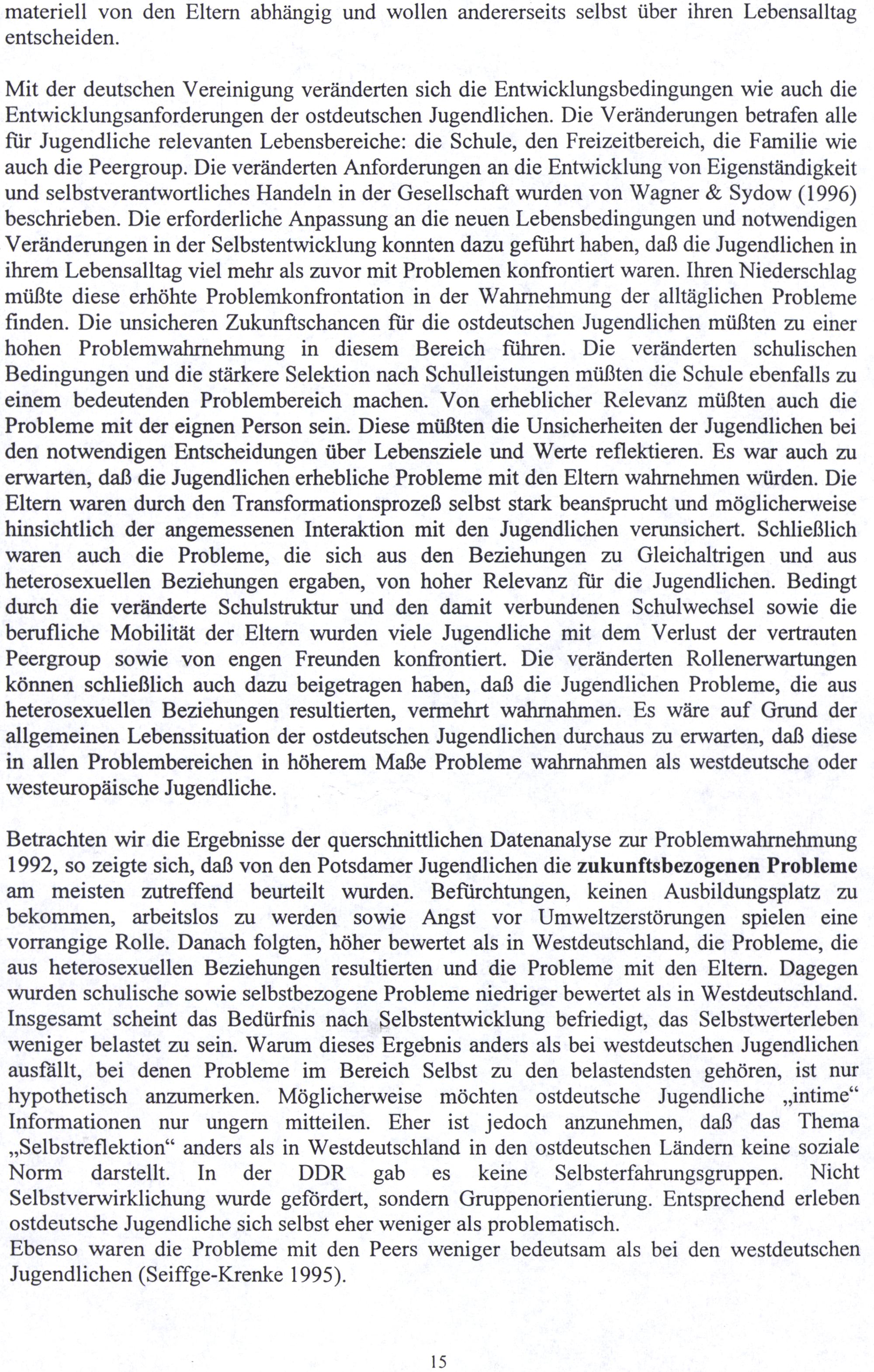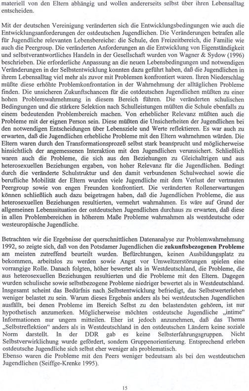 Ebenso waren die Probleme mit den Peers weniger bedeutsam als bei den westdeutschen Jugendlichen(Seiffge-Krenke 1995).