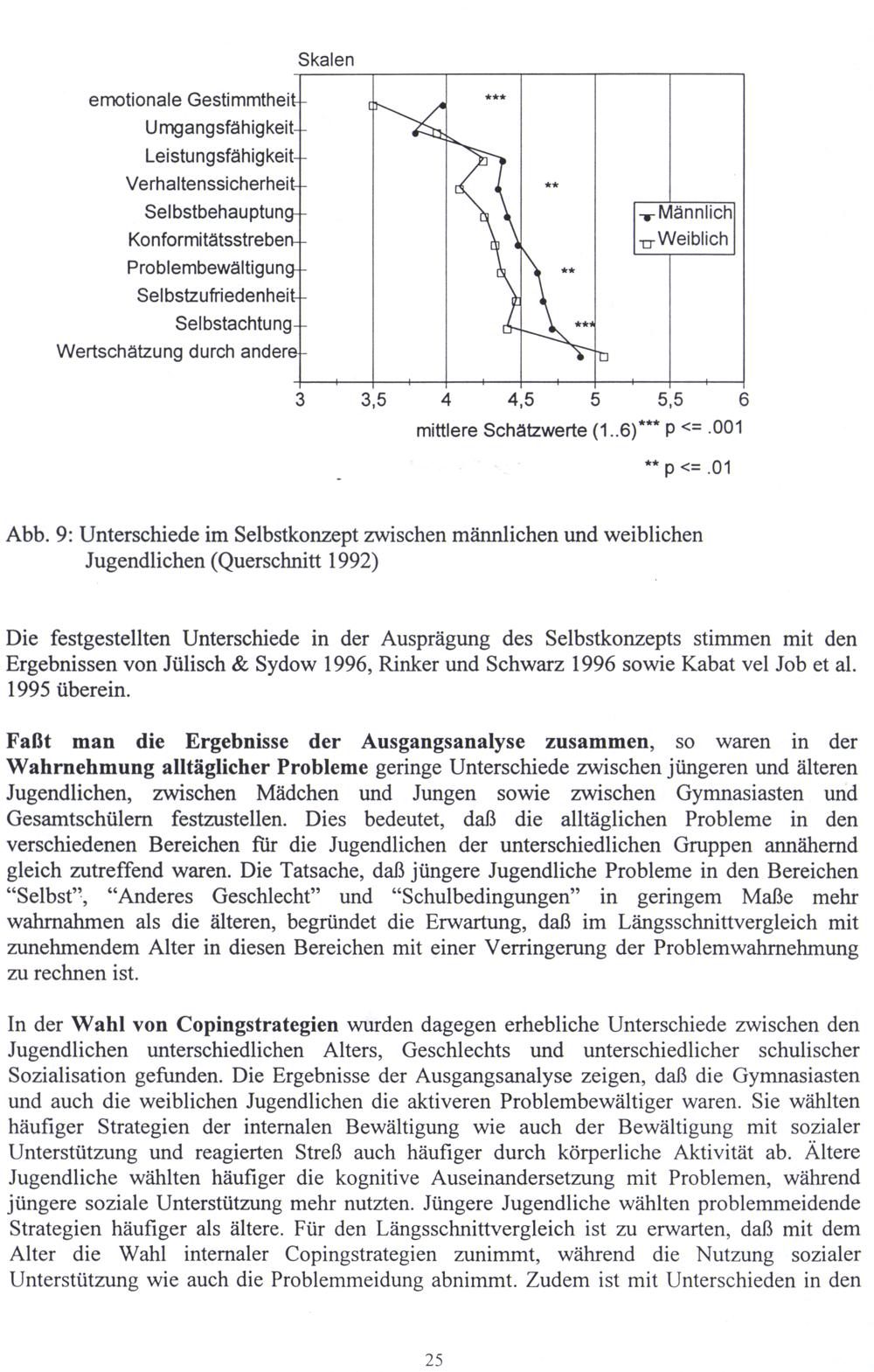 Abb. 9: Unterschiede im Selbstkonzept zwischen männlichen und weiblichen Jugendlichen(Querschnitt 1992)