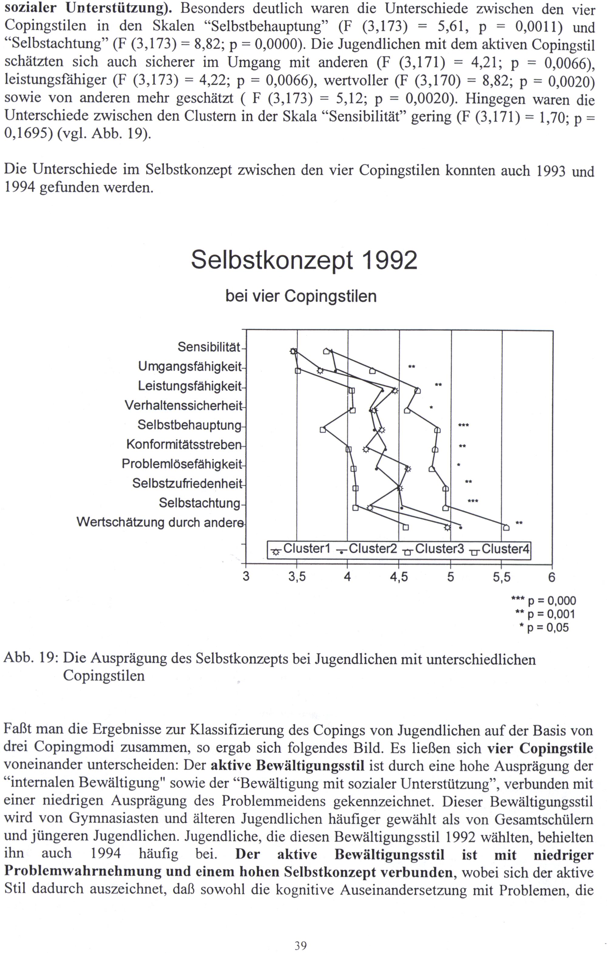 Die Unterschiede im Selbstkonzept zwischen den vier Copingstilen konnten auch 1993 und 1994 gefunden werden.
