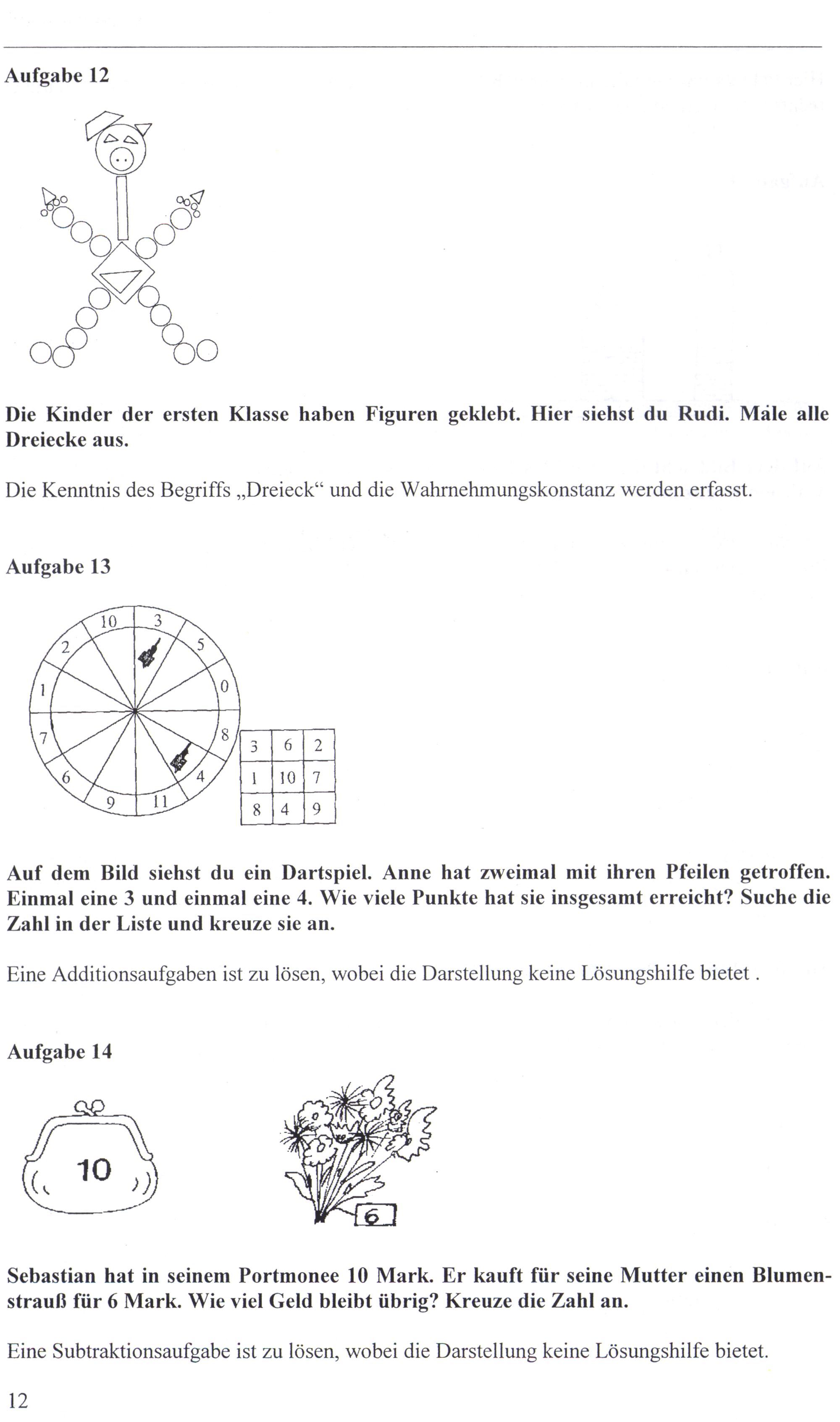 Die Kenntnis des Begriffs„Dreieck“ und die Wahrnehmungskonstanz werden erfasst.
