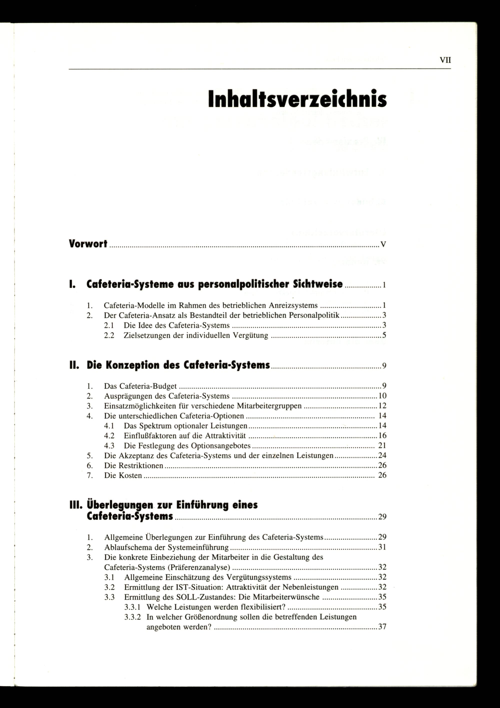 Vorwort Il. Cafeteria-Systeme aus personalpolitischer Sichtweise 1. Cafeteria-Modelle im Rahmen des betrieblichen Anreizsystems
