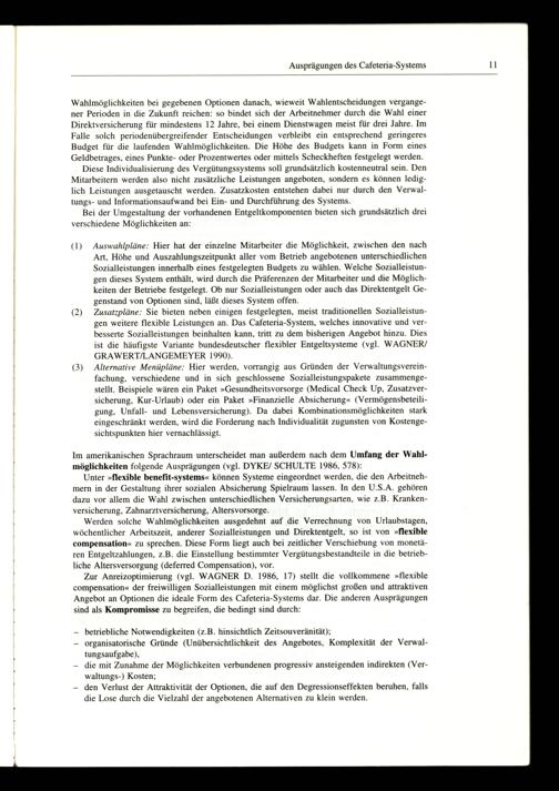 Zur Anreizoptimierung(vgl. WAGNER D. 1986, 17) stellt die vollkommene»flexible compensation« der freiwilligen Sozialleistungen mit einem möglichst großen und attraktiven Angebot an Optionen die ideale Form des Cafeteria-Systems dar. Die anderen Ausprägungen sind als Kompromisse zu begreifen, die bedingt sind durch: