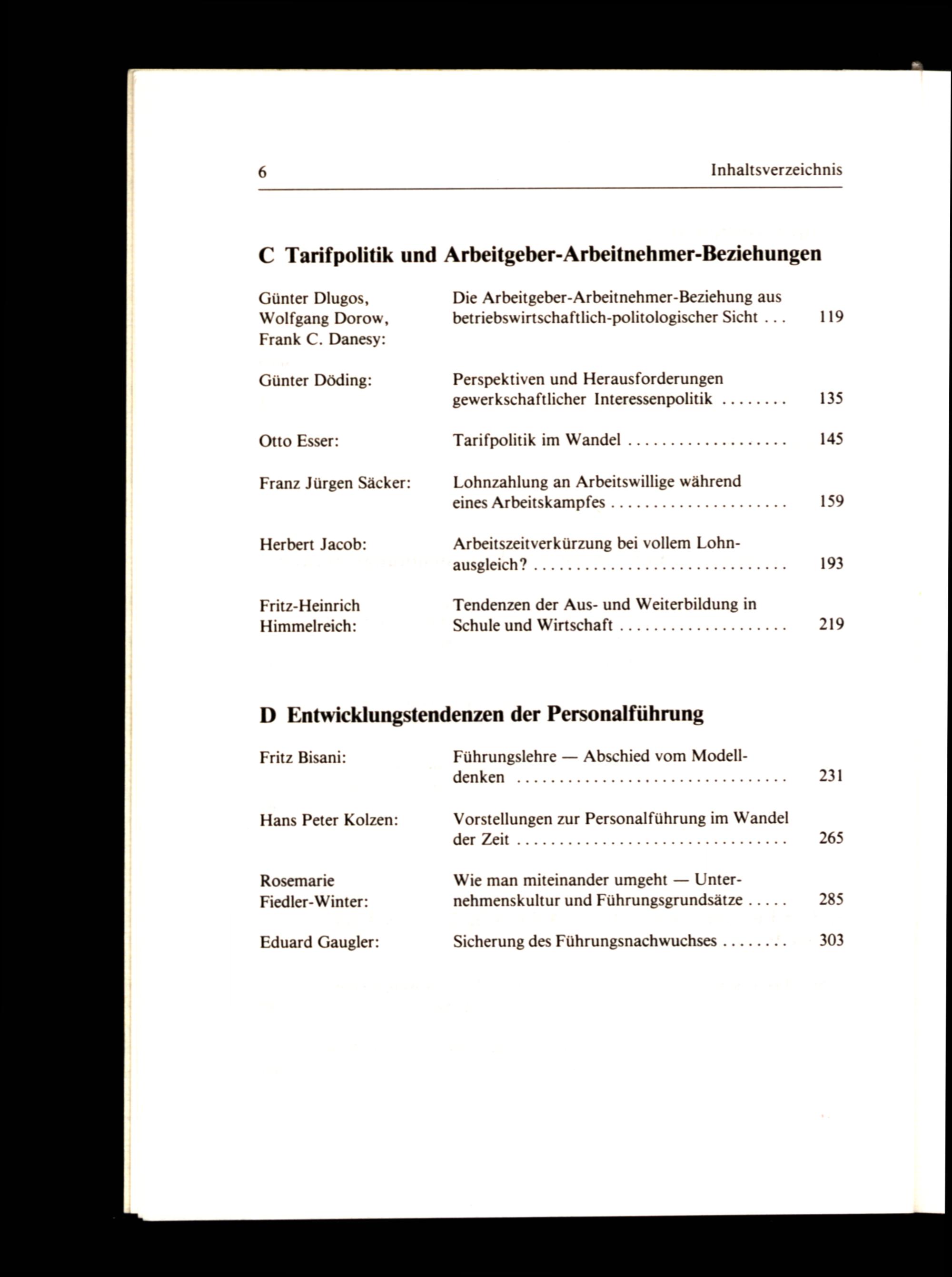 Die Arbeitgeber-Arbeitnehmer-Beziehung aus betriebswirtschaftlich-politologischer Sicht... 119