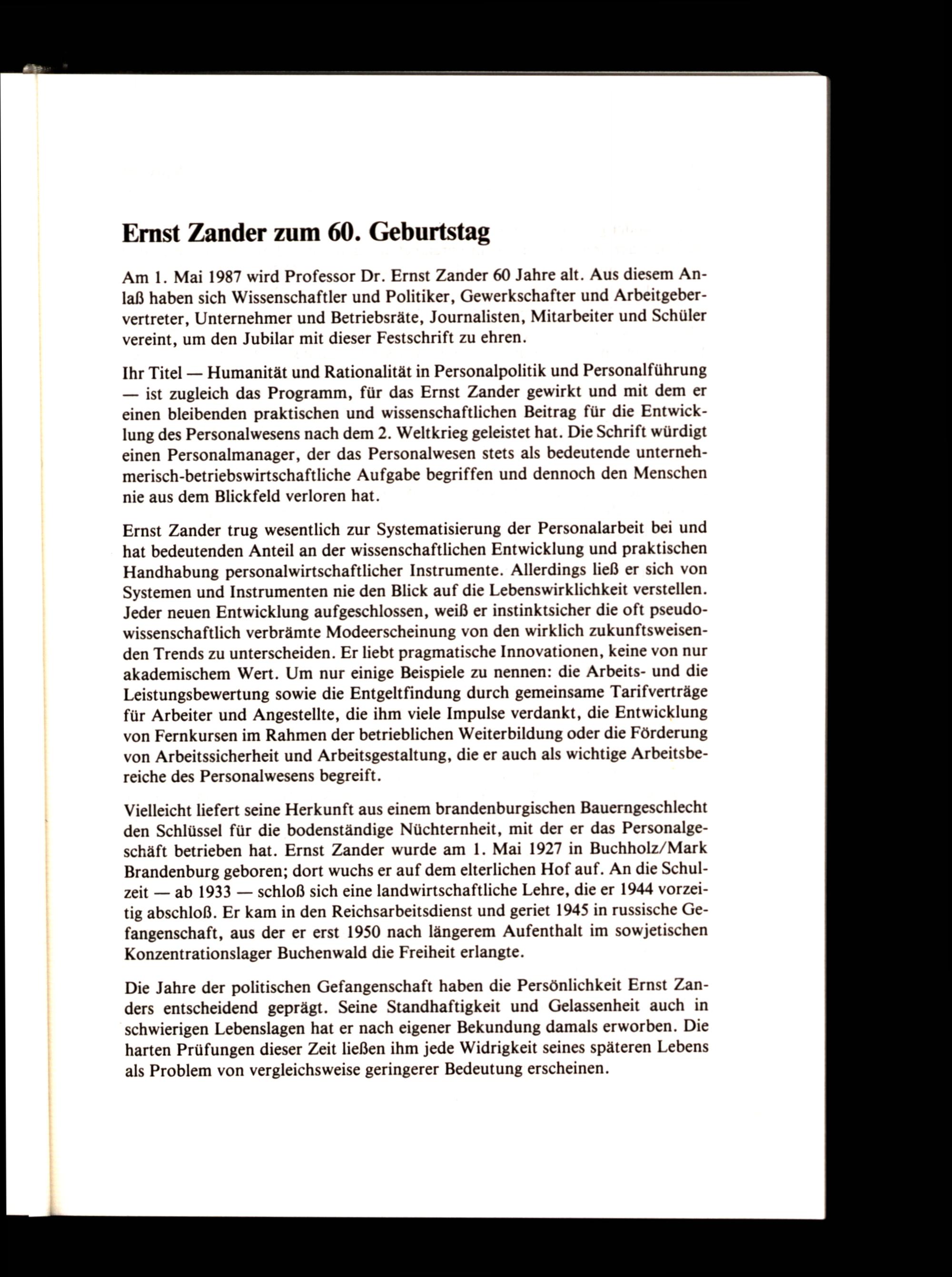 Am 1. Mai 1987 wird Professor Dr. Ernst Zander 60 Jahre alt. Aus diesem Anlaß haben sich Wissenschaftler und Politiker, Gewerkschafter und Arbeitgebervertreter, Unternehmer und Betriebsräte, Journalisten, Mitarbeiter und Schüler vereint, um den Jubilar mit dieser Festschrift zu ehren.