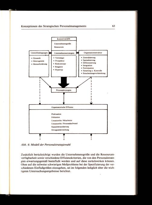 Zusätzlich berücksichtigt wurden die Unternehmensgröße und die Ressourcenverfügbarkeit sowie verschiedene Effizienzkriterien, die von den Personalstrategien erwartungsgemäß beeinflußt werden und auf diese zurückwirken können. Ohne auf die teilweise schwierigen Meßprobleme bei der Spezifizierung der verschiedenen Einflußgrößen einzugehen, sei im folgenden lediglich über die wichtigsten Untersuchungsergebnisse berichtet.