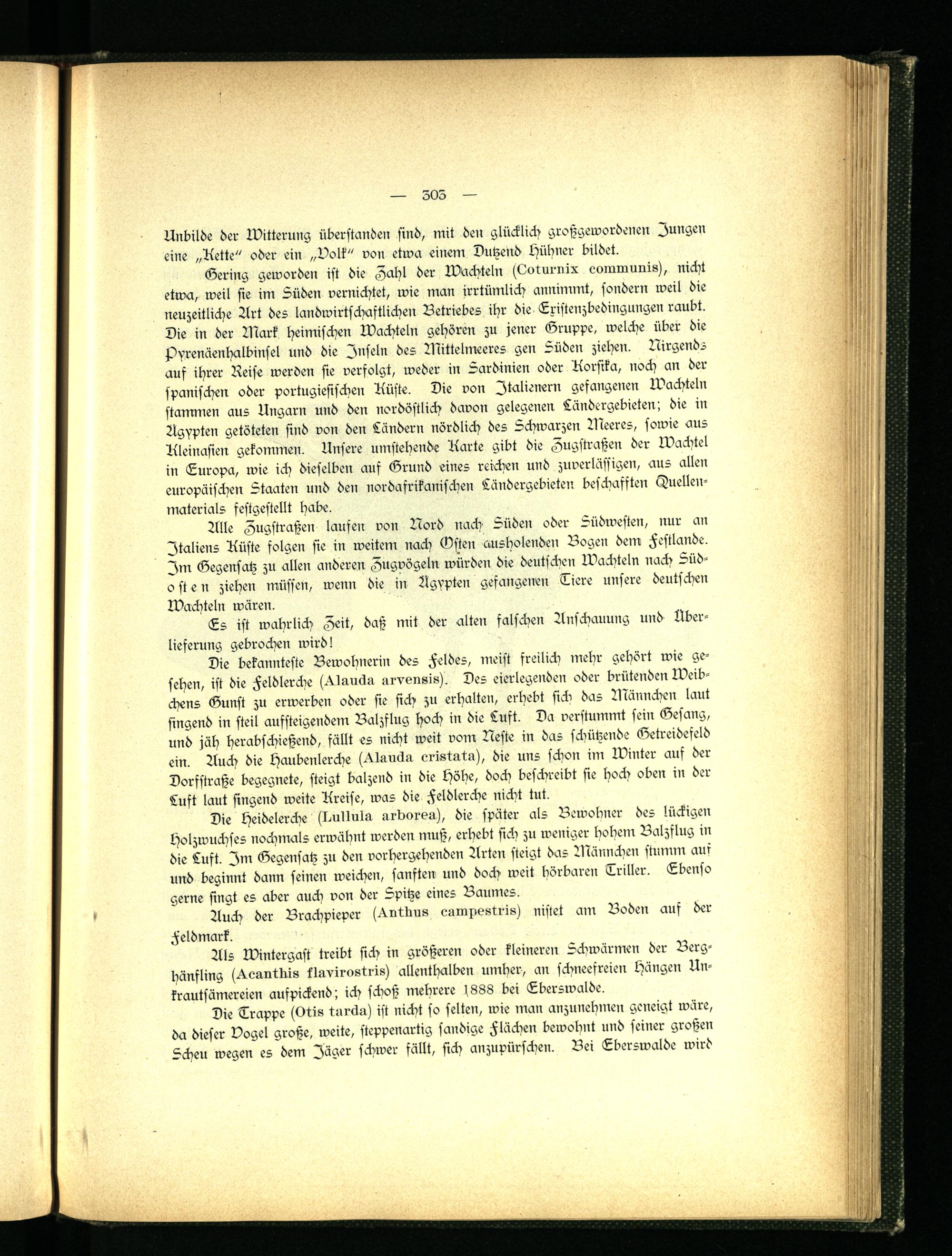 Die Trappe (Otis turcku) ist nicht so selten, wie man anzunehmen geneigt wäre, da dieser Vogel große, weite, steppenartig sandige Flächen bewohnt und seiner großen Scheu wegen es dem Jäger schwer fällt, sich anzupürschen. Bei Eberswalde wird