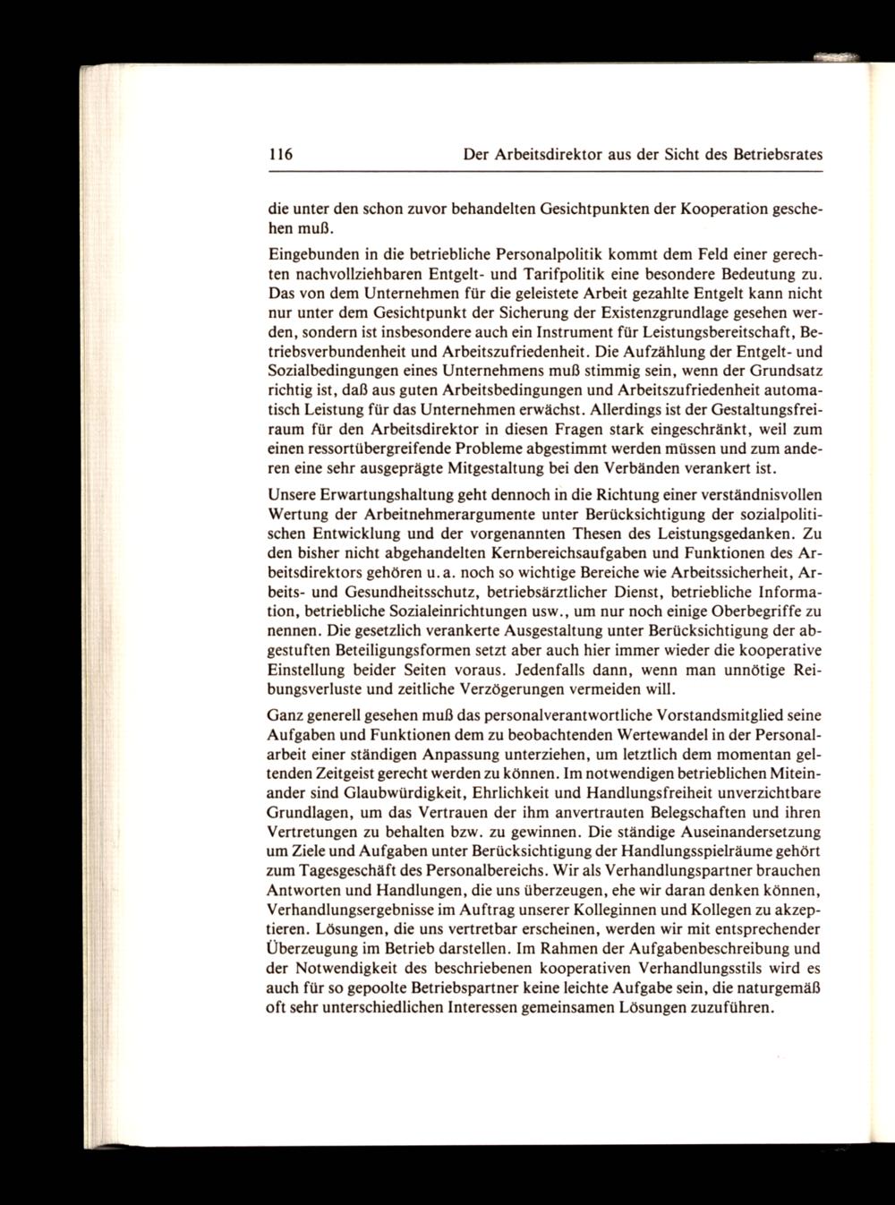 116 Der Arbeitsdirektor aus der Sicht des Betriebsrates