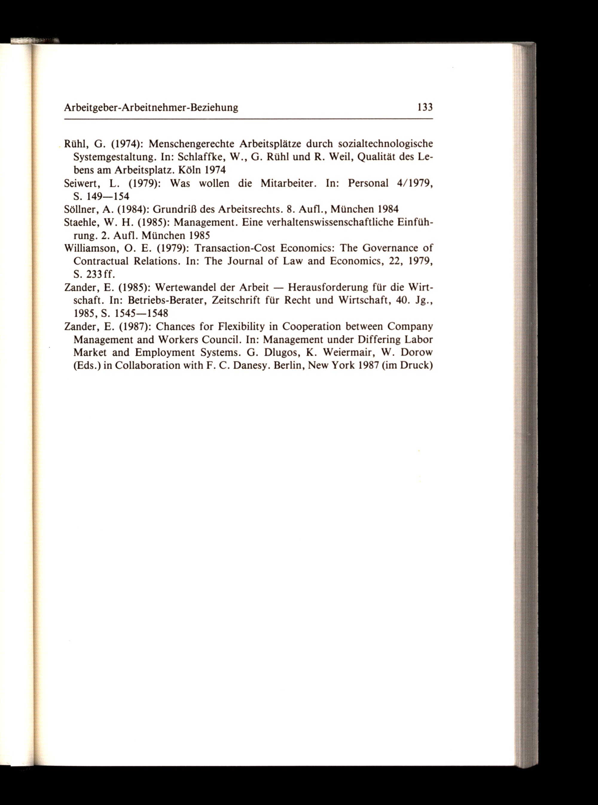 Zander, E.(1985): Wertewandel der Arbeit— Herausforderung für die Wirtschaft. In: Betriebs-Berater, Zeitschrift für Recht und Wirtschaft, 40. Jg., 1985, S. 1545—1548