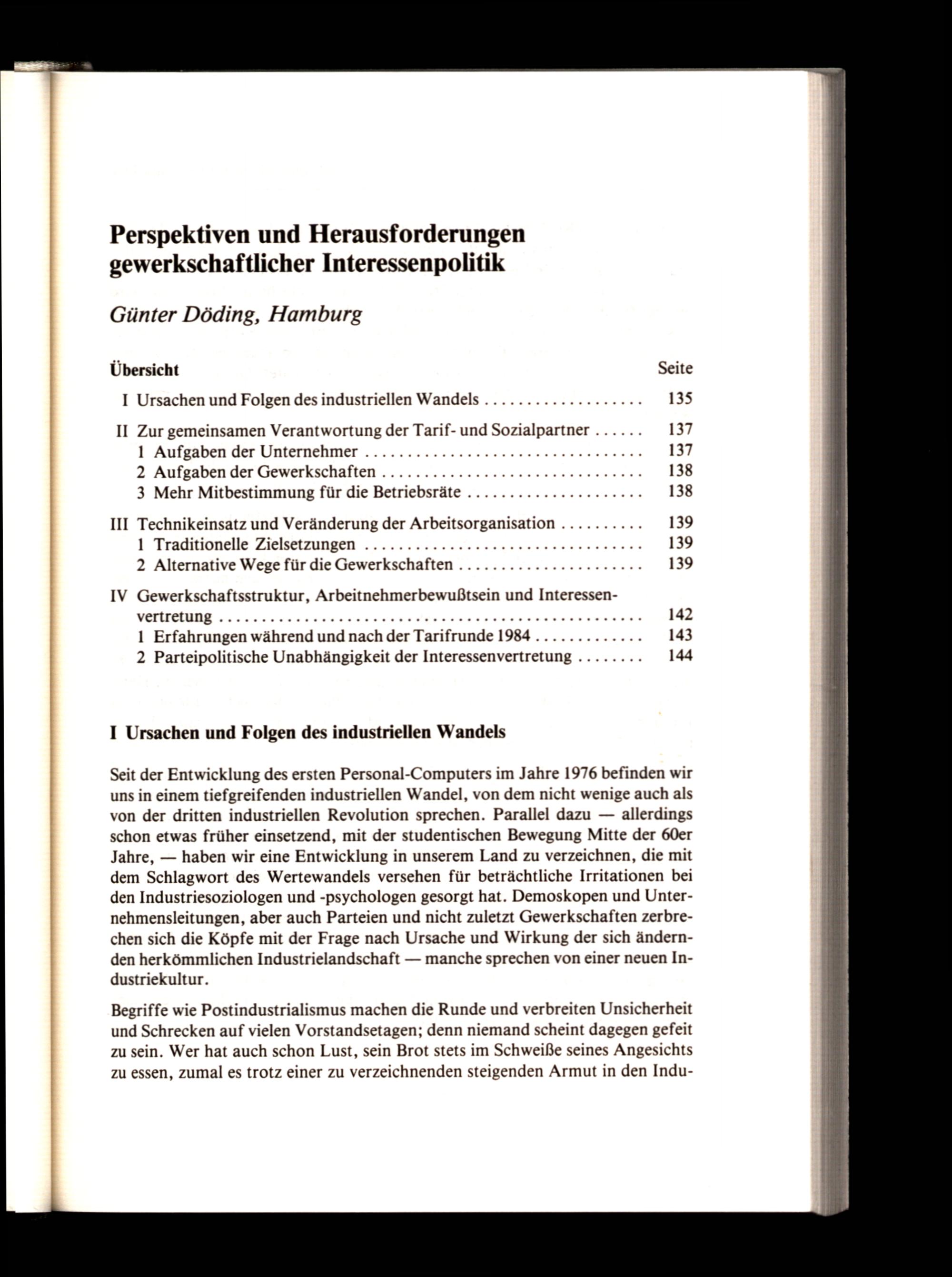 IV Gewerkschaftsstruktur, Arbeitnehmerbewußtsein und InteressenVertretung z..0..000.00 0440ER 142 1 Erfahrungen während und nach der Tarifrunde 1984............. 143 2 Parteipolitische Unabhängigkeit der Interessenvertretung........ 144