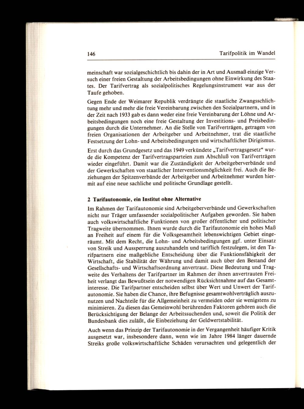 Auch wenn das Prinzip der Tarifautonomie in der Vergangenheit häufiger Kritik ausgesetzt war, insbesondere dann, wenn wie im Jahre 1984 länger dauernde Streiks große volkswirtschaftliche Schäden verursachten und gelegentlich der