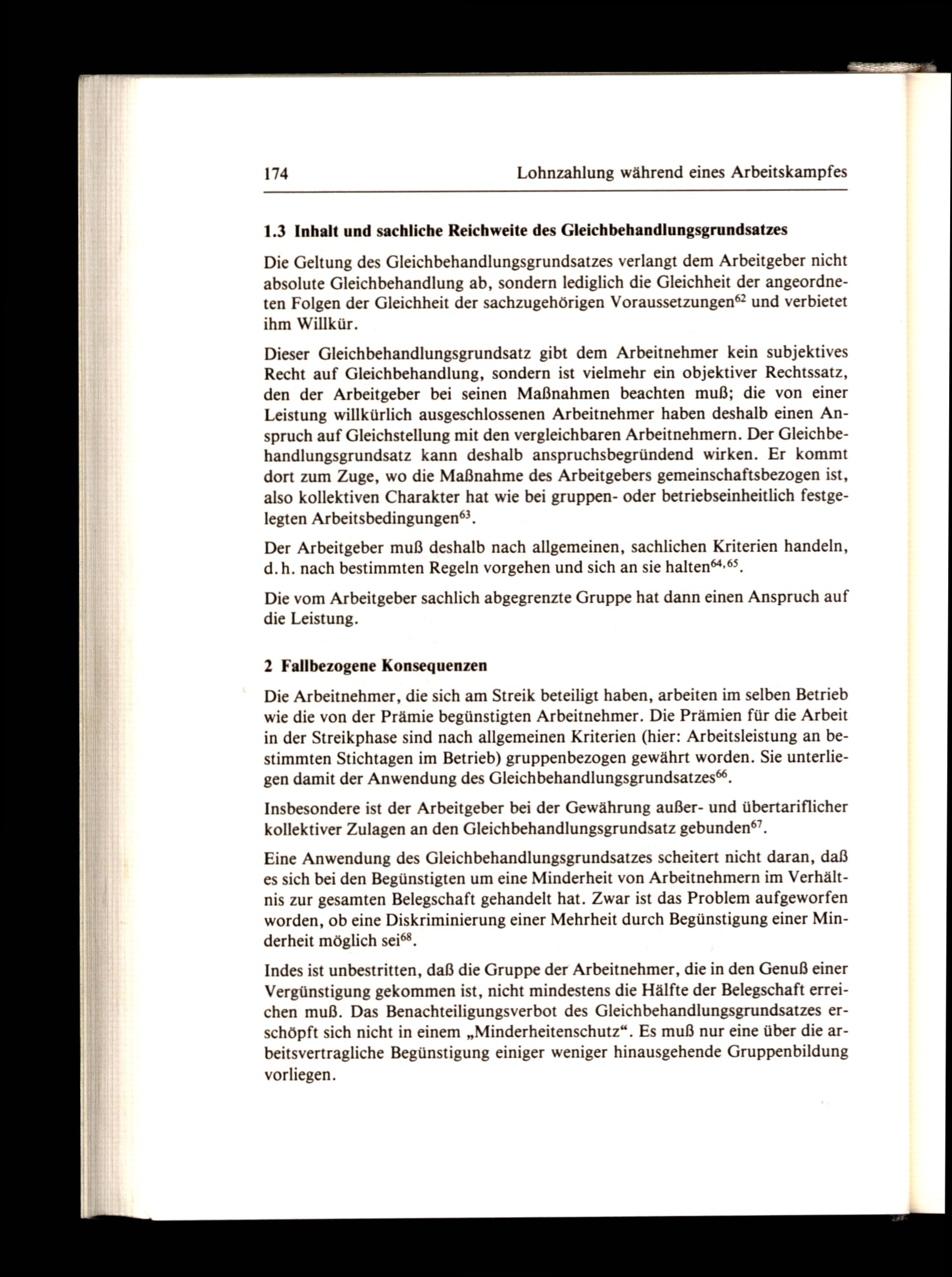 Dieser Gleichbehandlungsgrundsatz gibt dem Arbeitnehmer kein subjektives Recht auf Gleichbehandlung, sondern ist vielmehr ein objektiver Rechtssatz, den der Arbeitgeber bei seinen Maßnahmen beachten muß; die von einer Leistung willkürlich ausgeschlossenen Arbeitnehmer haben deshalb einen Anspruch auf Gleichstellung mit den vergleichbaren Arbeitnehmern. Der Gleichbehandlungsgrundsatz kann deshalb anspruchsbegründend wirken. Er kommt dort zum Zuge, wo die Maßnahme des Arbeitgebers gemeinschaftsbezogen ist, also kollektiven Charakter hat wie bei gruppen- oder betriebseinheitlich festgelegten Arbeitsbedingungen®?.