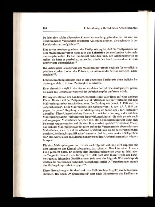 Eine solche Auslegung anhand der Tarifpraxis ergibt, daß die Tarifparteien mit dem Maßregelungsverbot nicht auch das Lohnrisiko des streikenden Arbeitnehmers regeln wollen. Es hat traditionell nicht den Sinn, den Arbeitnehmer so zu stellen, als hätte er gearbeitet, um so ihm durch den Streik entstandene Vermögensverluste auszugleichen!!°