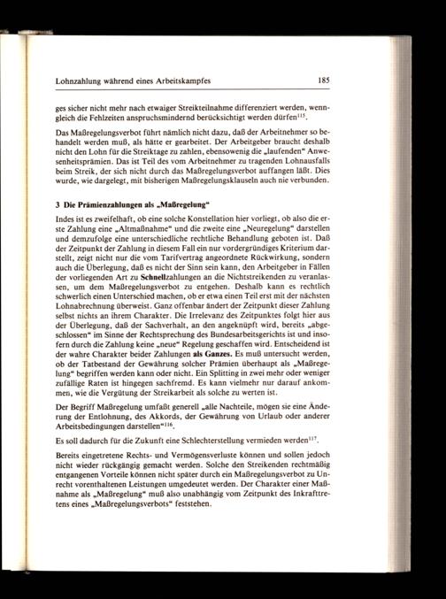 Das Maßregelungsverbot führt nämlich nicht dazu, daß der Arbeitnehmer so behandelt werden muß, als hätte er gearbeitet. Der Arbeitgeber braucht deshalb nicht den Lohn für die Streiktage zu zahlen, ebensowenig die„laufenden“ Anwesenheitsprämien. Das ist Teil des vom Arbeitnehmer zu tragenden Lohnausfalls beim Streik, der sich nicht durch das Maßregelungsverbot auffangen läßt. Dies wurde, wie dargelegt, mit bisherigen Maßregelungsklauseln auch nie verbunden.