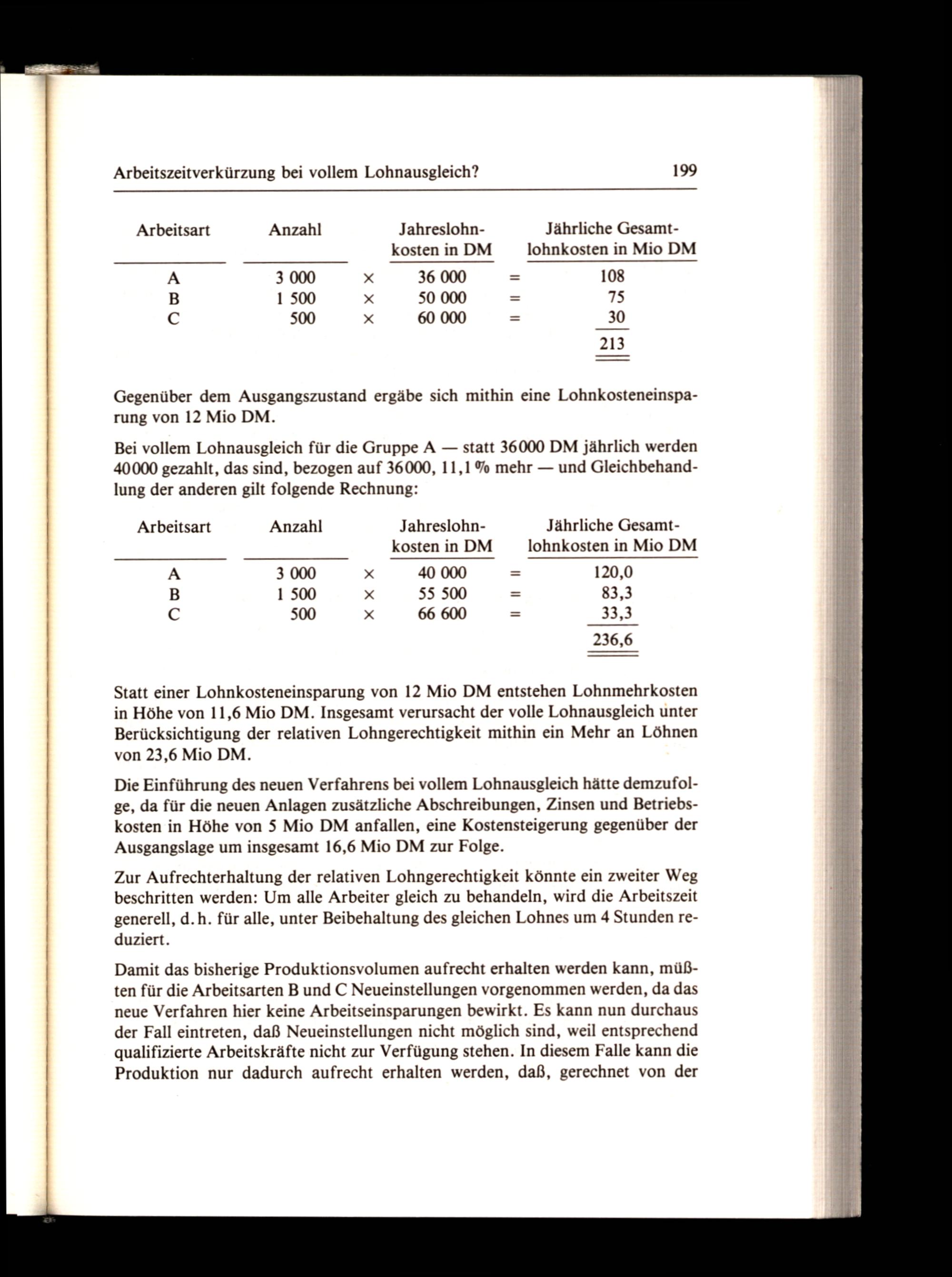 Arbeitszeitverkürzung bei vollem Lohnausgleich? 199