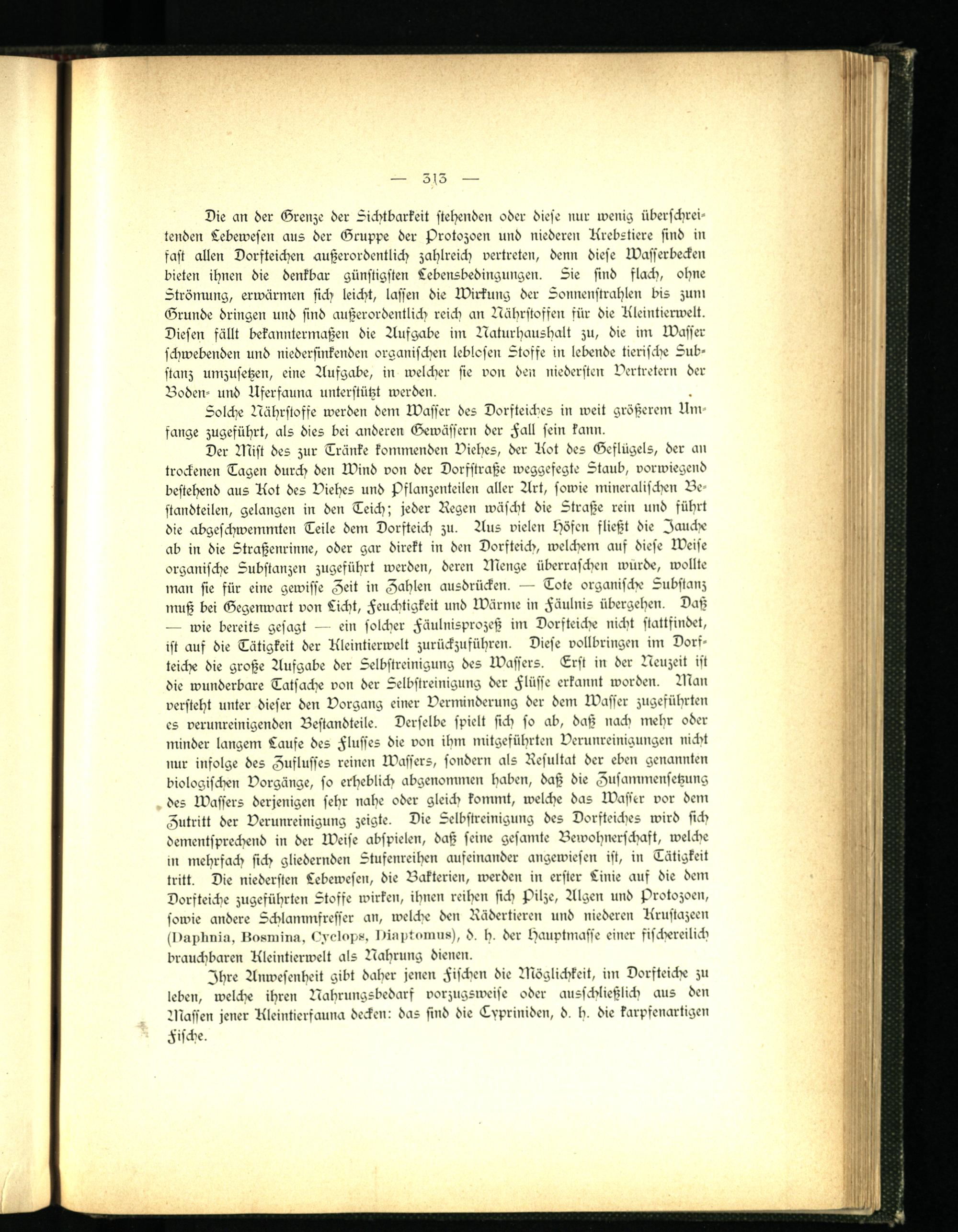 Ihre Anwesenheit gibt daher jenen Fischen die Wöglichkeit, im Dorfteiche zu leben, welckie ikren Nabrungsbedarf vorzugsrveise oder ausschließlich aus den Blassen jener Kleintierfauna decken: das sind die Lvpriniden, d. h. die karpfenartigen Fische.