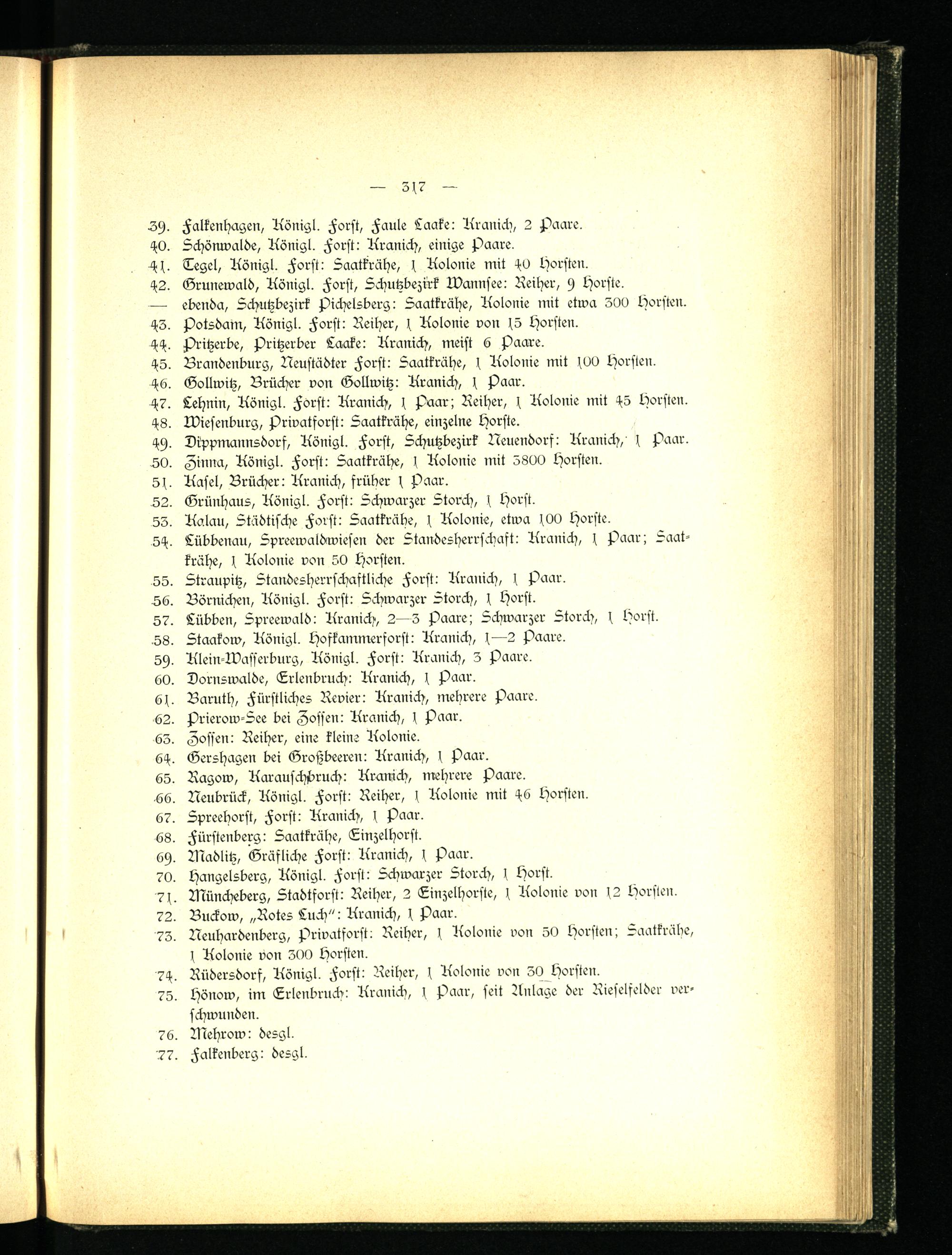 — ebenda, Schutzbezirk Pichelsberg: Saatkrähe, Aolonie mit etwa 300 Horsten. H3. Potsdam, Aönigl. Forst: Reiher, s Aolonie von Horsten.