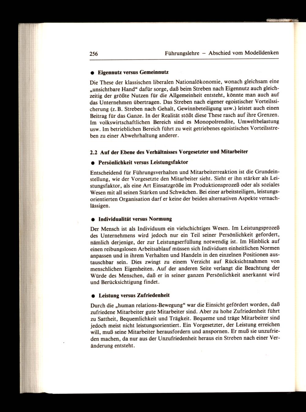 Entscheidend für Führungsverhalten und Mitarbeiterreaktion ist die Grundeinstellung, wie der Vorgesetzte den Mitarbeiter sieht. Sieht er ihn stärker als Leistungsfaktor, als eine Art Einsatzgröße im Produktionsprozeß oder als soziales Wesen mit all seinen Stärken und Schwächen. Bei einer arbeitsteiligen, leistungsorientierten Organisation darf er keine der beiden alternativen Aspekte vernachlässigen.