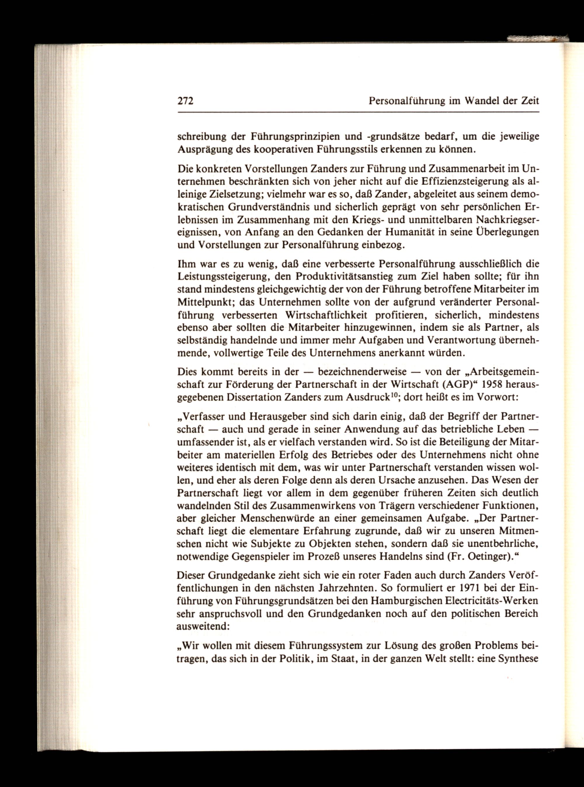 Dies kommt bereits in der— bezeichnenderweise— von der„Arbeitsgemeinschaft zur Förderung der Partnerschaft in der Wirtschaft(AGP)“ 1958 herausgegebenen Dissertation Zanders zum Ausdruck!®; dort heißt es im Vorwort: