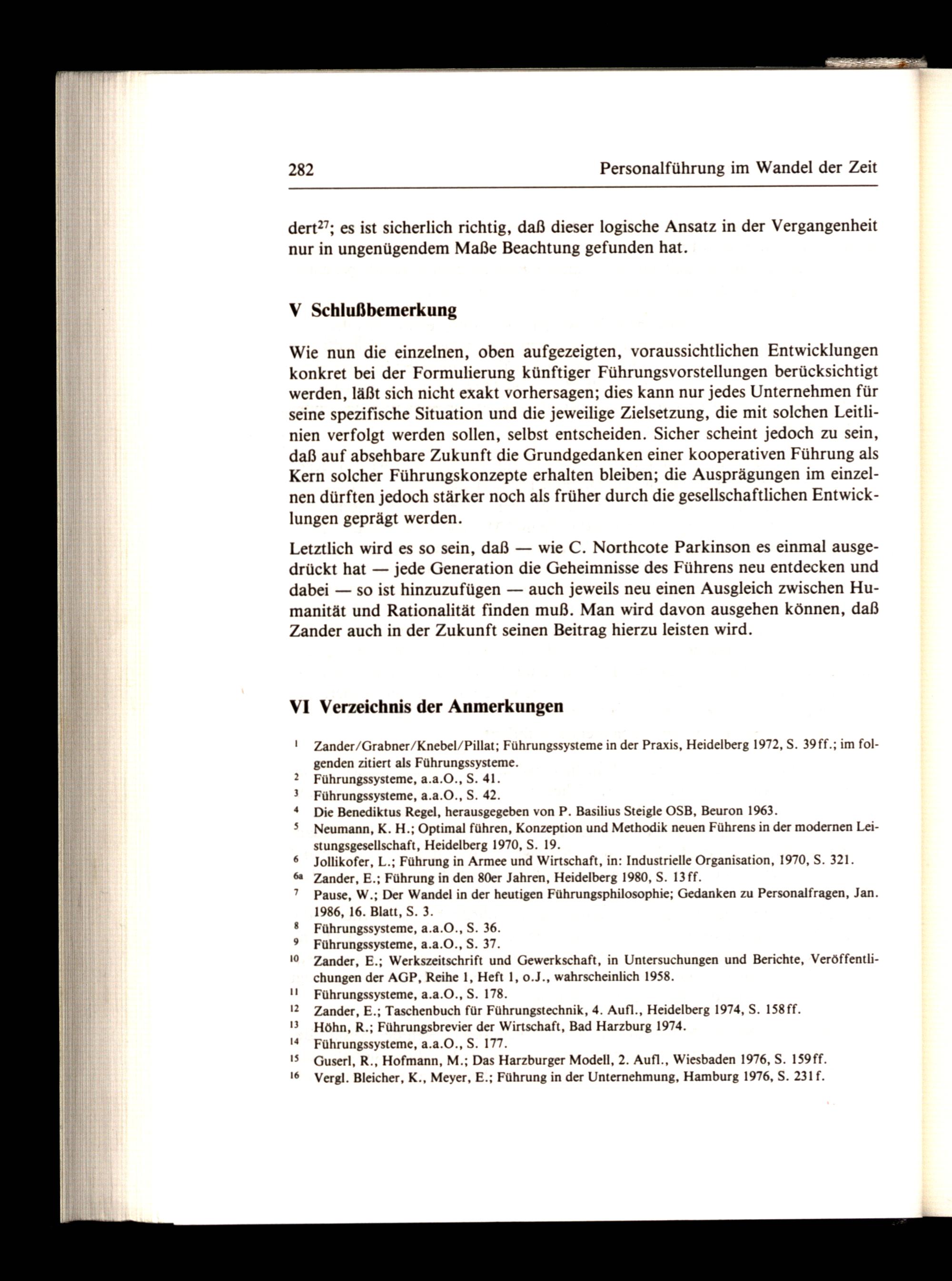 Letztlich wird es so sein, daß— wie C. Northcote Parkinson es einmal ausgedrückt hat— jede Generation die Geheimnisse des Führens neu entdecken und dabei— so ist hinzuzufügen— auch jeweils neu einen Ausgleich zwischen Humanität und Rationalität finden muß. Man wird davon ausgehen können, daß Zander auch in der Zukunft seinen Beitrag hierzu leisten wird.