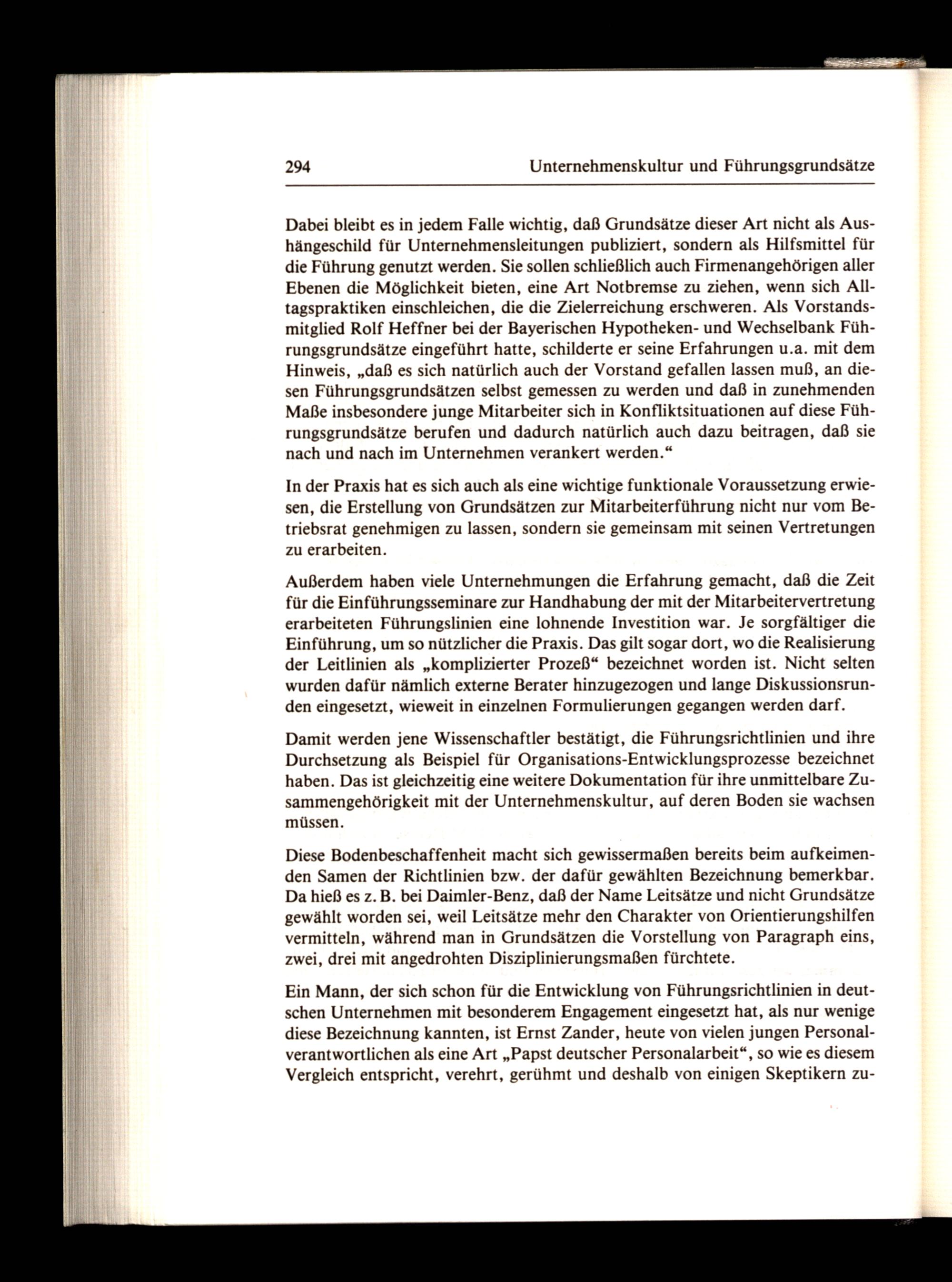 Ein Mann, der sich schon für die Entwicklung von Führungsrichtlinien in deutschen Unternehmen mit besonderem Engagement eingesetzt hat, als nur wenige diese Bezeichnung kannten, ist Ernst Zander, heute von vielen jungen Personalverantwortlichen als eine Art„Papst deutscher Personalarbeit“, so wie es diesem Vergleich entspricht, verehrt, gerühmt und deshalb von einigen Skeptikern zu