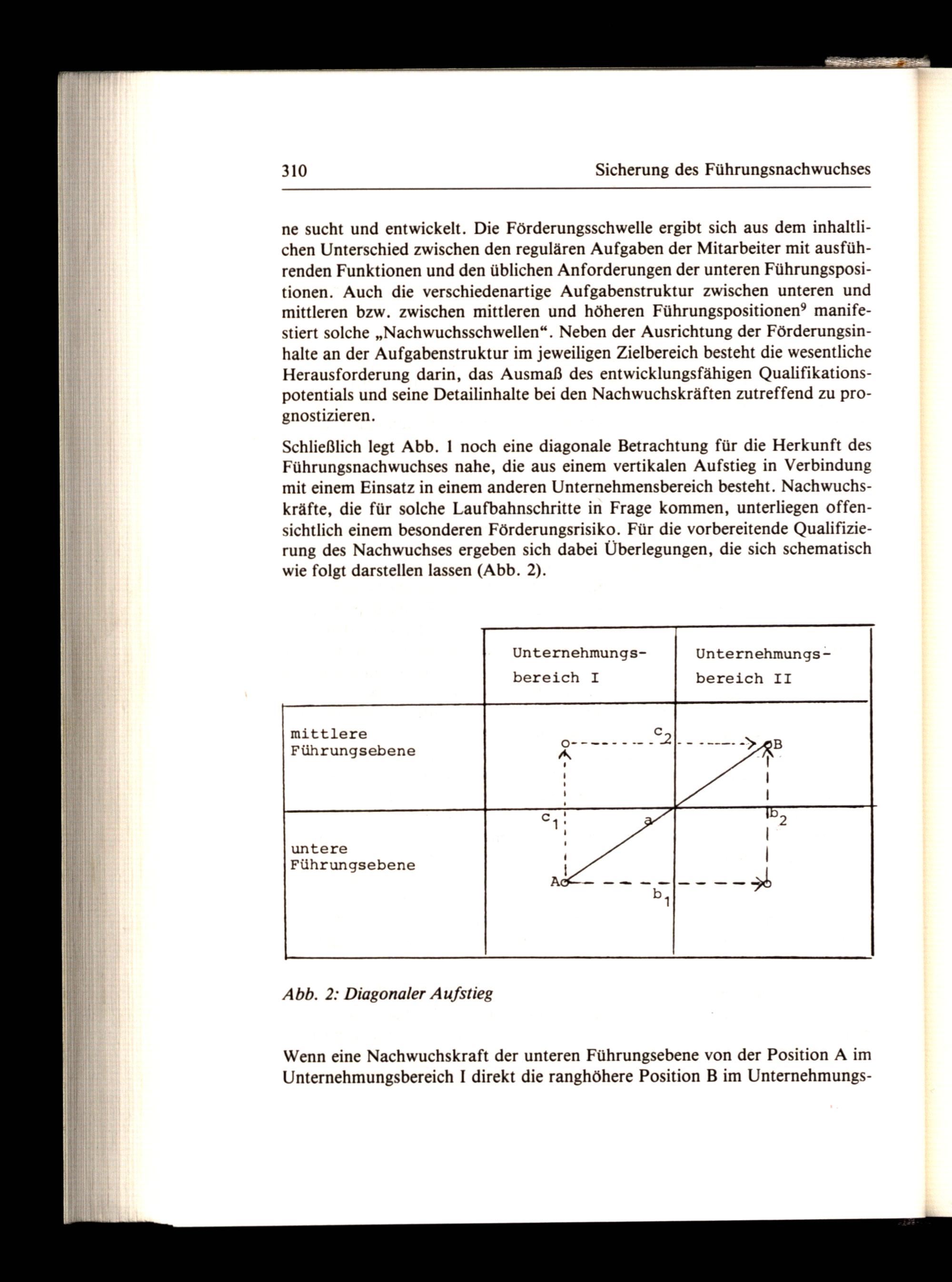 ne sucht und entwickelt. Die Förderungsschwelle ergibt sich aus dem inhaltlichen Unterschied zwischen den regulären Aufgaben der Mitarbeiter mit ausführenden Funktionen und den üblichen Anforderungen der unteren Führungspositionen. Auch die verschiedenartige Aufgabenstruktur zwischen unteren und mittleren bzw. zwischen mittleren und höheren Führungspositionen®? manifestiert solche„Nachwuchsschwellen“. Neben der Ausrichtung der Förderungsinhalte an der Aufgabenstruktur im jeweiligen Zielbereich besteht die wesentliche Herausforderung darin, das Ausmaß des entwicklungsfähigen Qualifikationspotentials und seine Detailinhalte bei den Nachwuchskräften zutreffend zu prognostizieren.