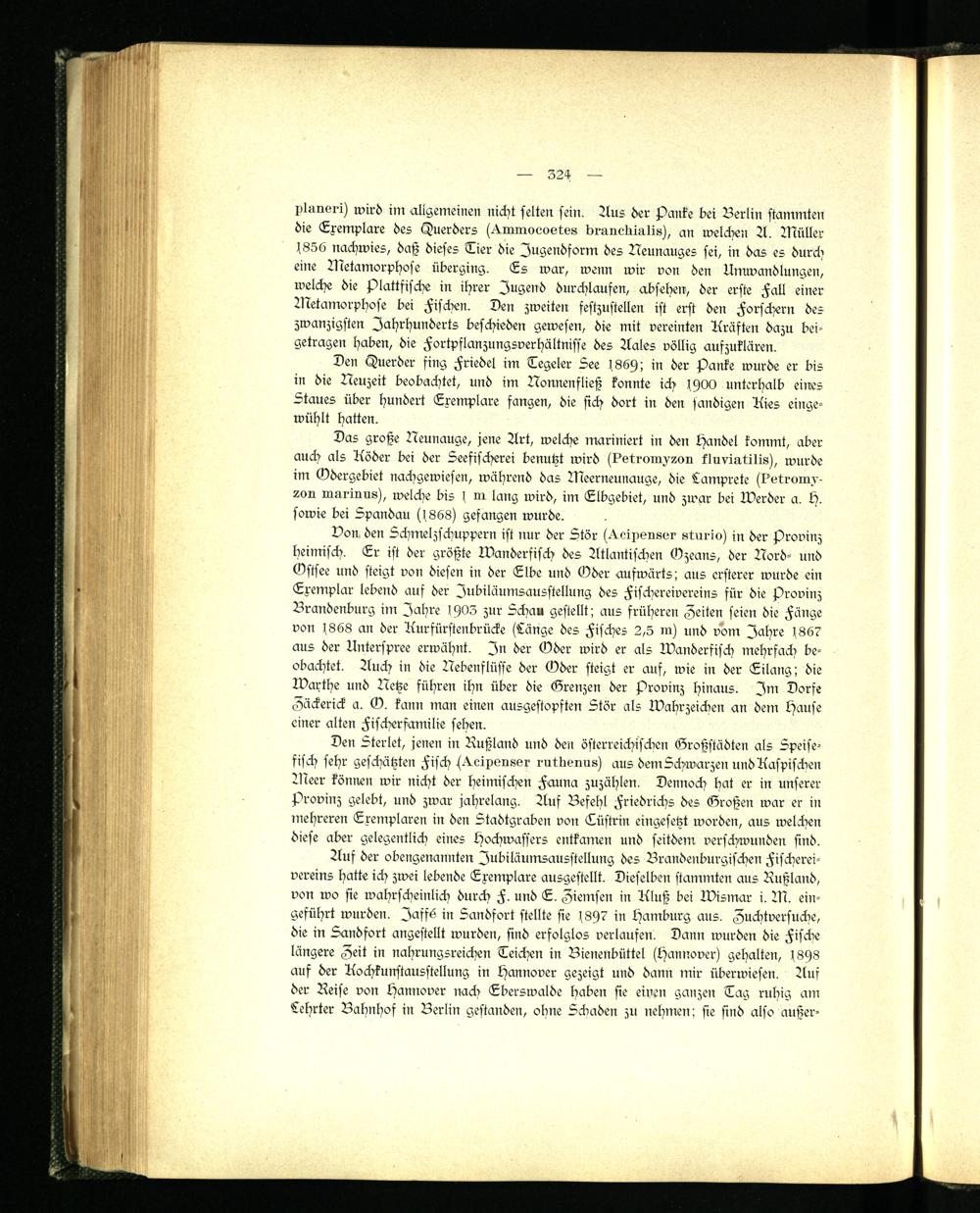 Den Sterlet, jenen in Rußland und den österreichischen Großstädten als Speisefisch sehr geschätzten Fisch P4.eip6u8sr ruttumus) aus dem Schwarzen und Kaspischen Meer können wir nicht der heimischen Fauna zuzählen. Dennoch hat er in unserer Provinz gelebt, und zwar jahrelang. Auf Befehl Friedrichs des Großen war er in mehreren Exemplaren in den Stadtgraben von Eüstrin eingesetzt worden, aus welchen diese aber gelegentlich eines Hochwassers entkamen und seitdem verschwunden sind.