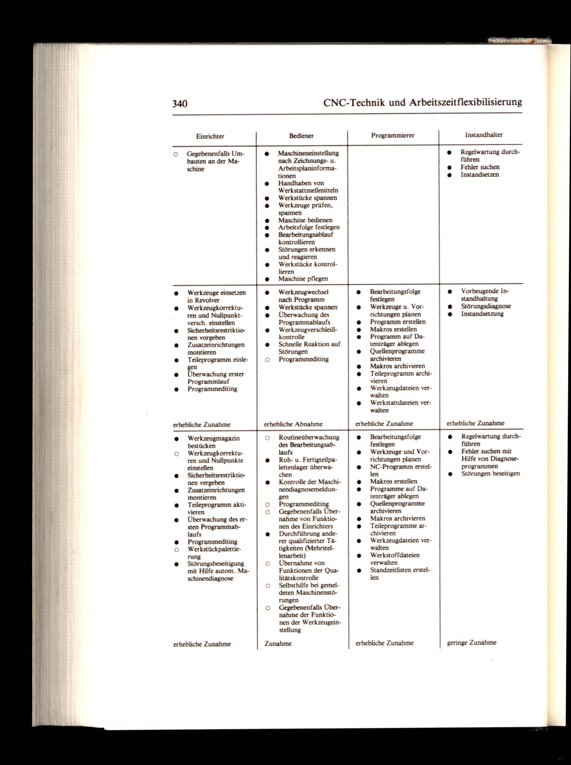 Programmeditil Gegebenentalis Ubernahme von Funktionen des Einrichters Durchführung anderer qualifizierter Tätigkeiten(Mehrstellenarbeit) Übernahme von Funktionen der Qualitätskontrolle Selbsthilfe bei gemeldeten Maschinenstörungen Gegebenenfalls Übernahme der Funktionen der Werkzeugeinstellung
