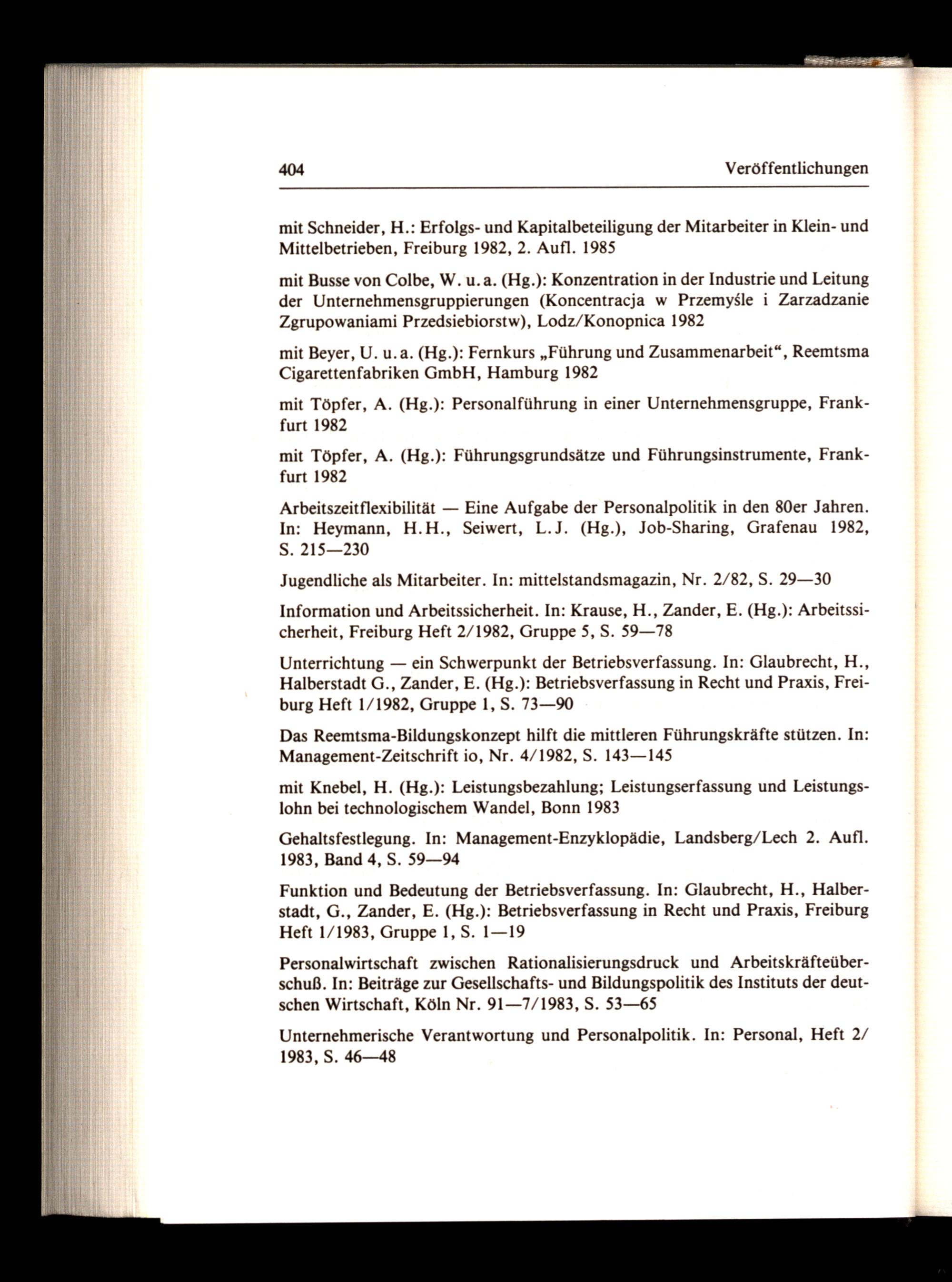 Personalwirtschaft zwischen Rationalisierungsdruck und Arbeitskräfteüberschuß. In: Beiträge zur Gesellschafts- und Bildungspolitik des Instituts der deutschen Wirtschaft, Köln Nr. 91—7/1983, S. 53—65