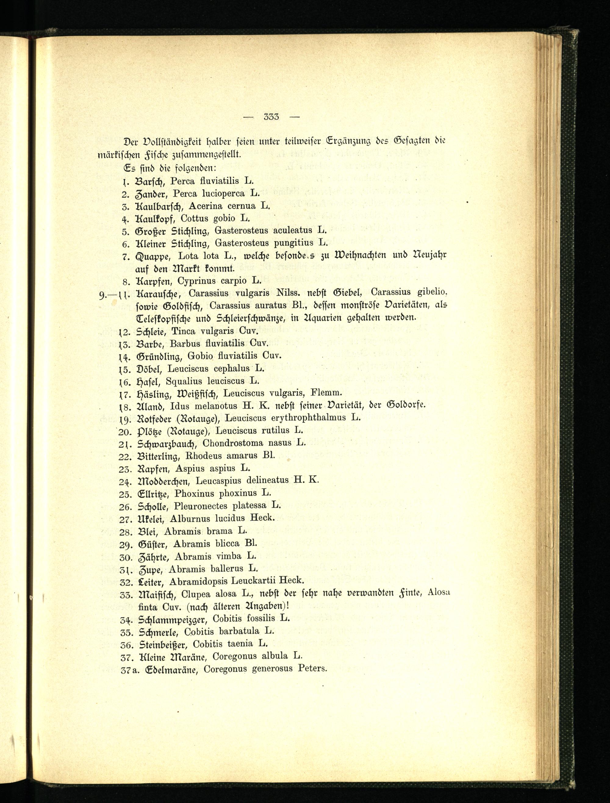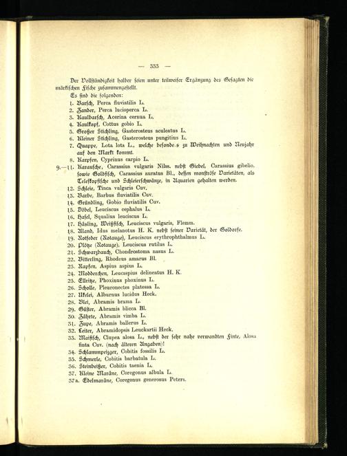 Der Vollständigkeit halber seien unter teilweiser Ergänzung des Gesagten die märkischen Fische zusammengestellt.
