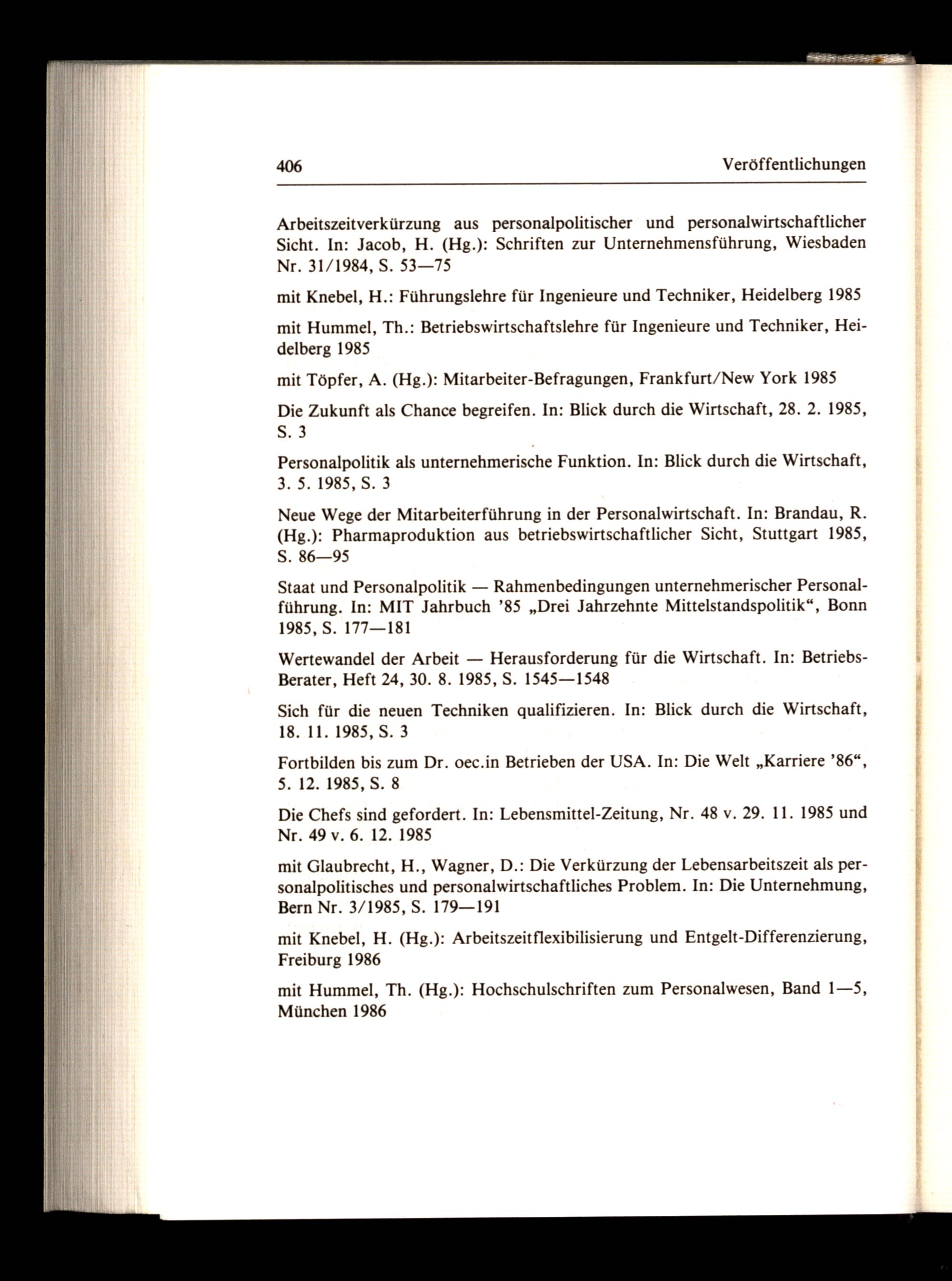 mit Hummel, Th.(Hg.): Hochschulschriften zum Personalwesen, Band 1—5, München 1986