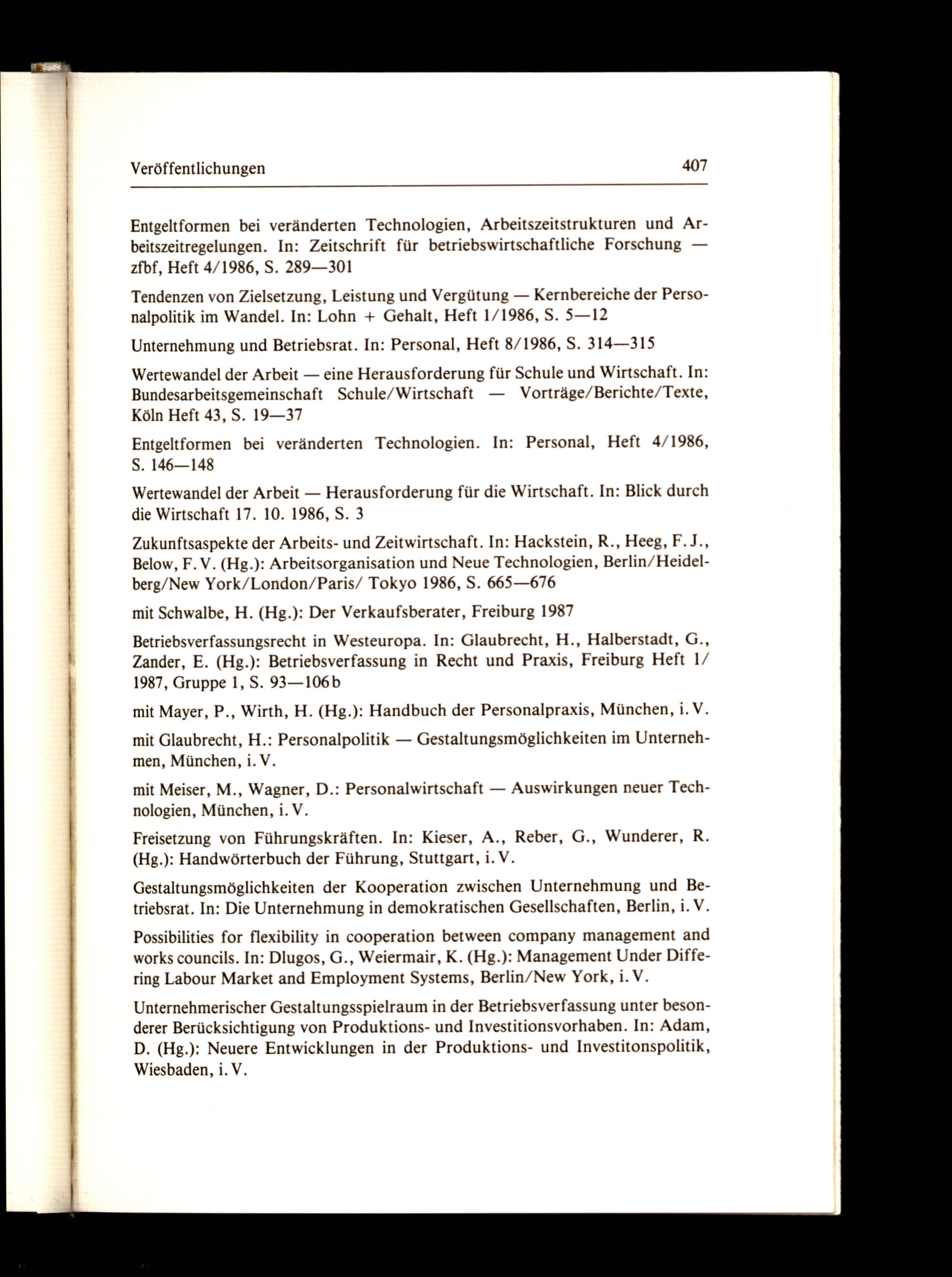 Possibilities for flexibility in cooperation between company management and works councils. In: Dlugos, G., Weiermair, K.(Hg.): Management Under Differing Labour Market and Employment Systems, Berlin/New York, i. V.