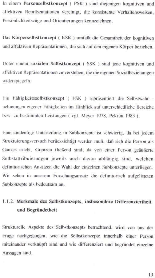 1.1.2. Merkmale des Selbstkonzepts, insbesondere Differenziertheit