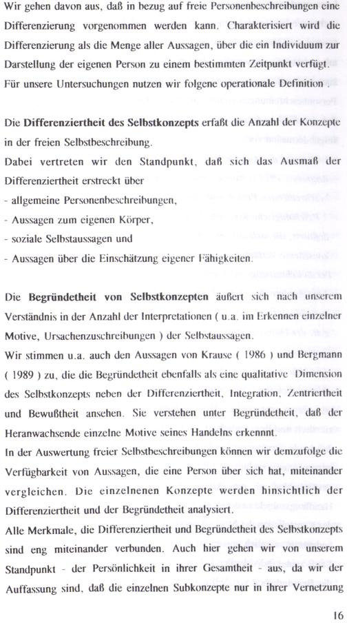 Die Differenziertheit des Selbstkonzepts erfaßt die Anzahl der Konzepte in der freien Selbstbeschreibung.