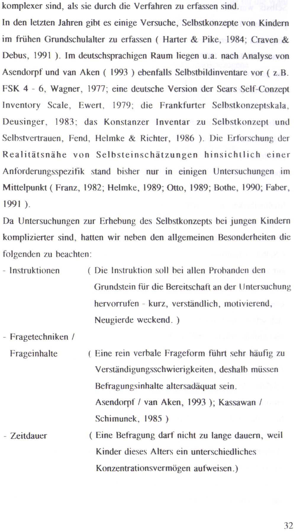Asendorpf und van Aken( 1993) ebenfalls Selbstbildinventare vor( z.B.