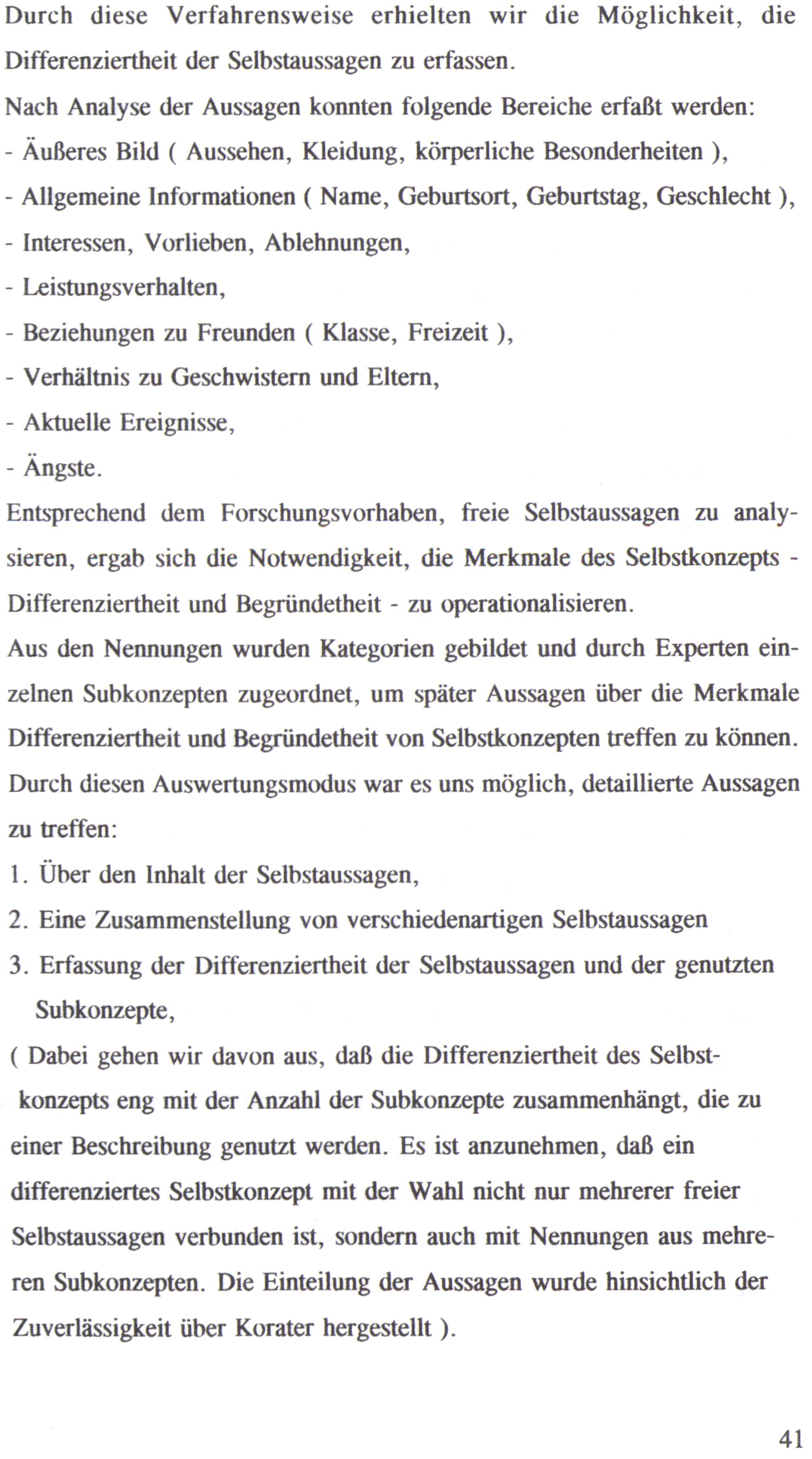 Differenziertheit und Begründetheit von Selbstkonzepten treffen zu können.