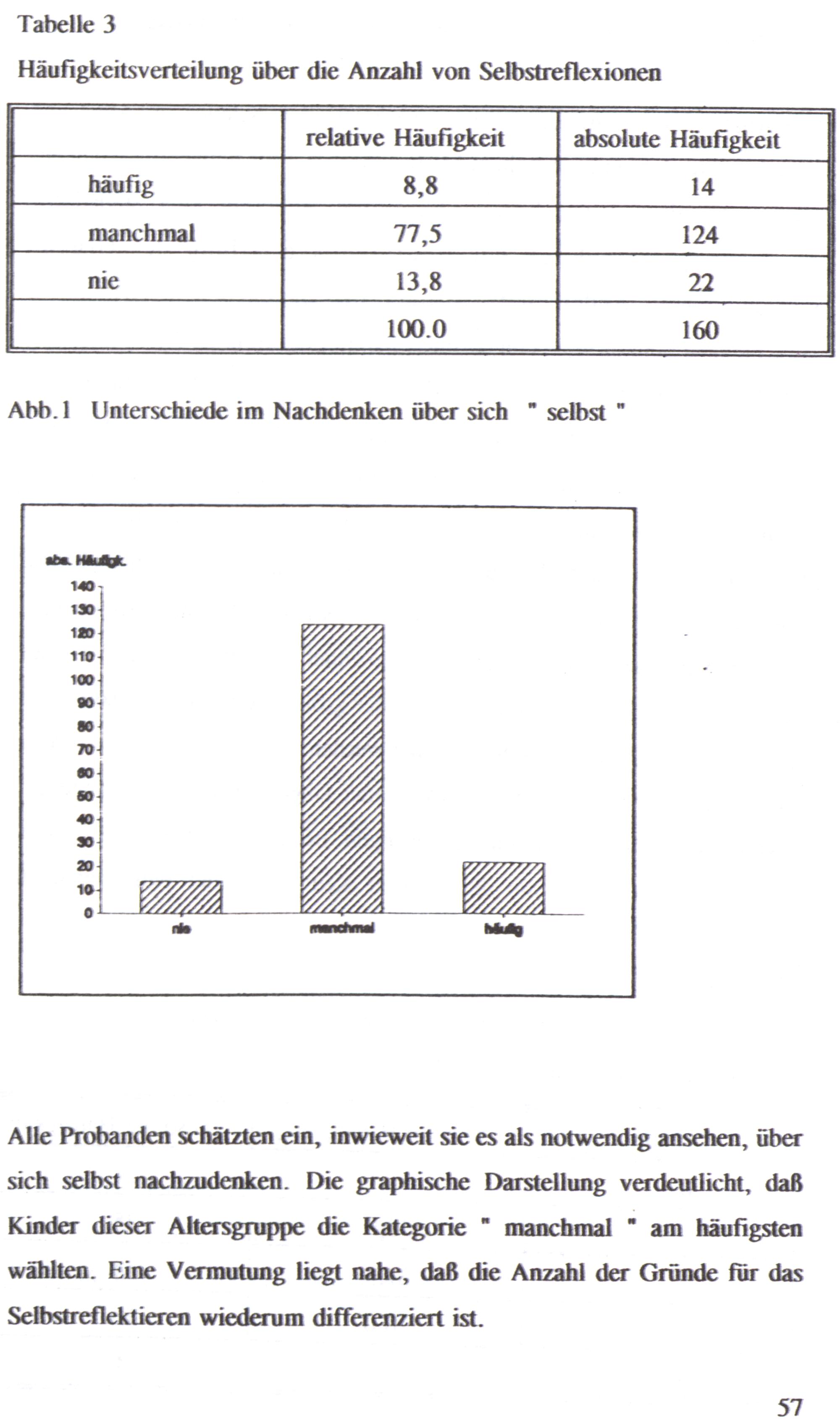 Alle Probanden schätzten ein, inwieweit sie es als notwendig ansehen, über sich selbst nachzudenken. Die graphische Darstellung verdeutlicht, daß wählten. Eine Vermutung liegt nahe, daß die Anzahl der Gründe für das
