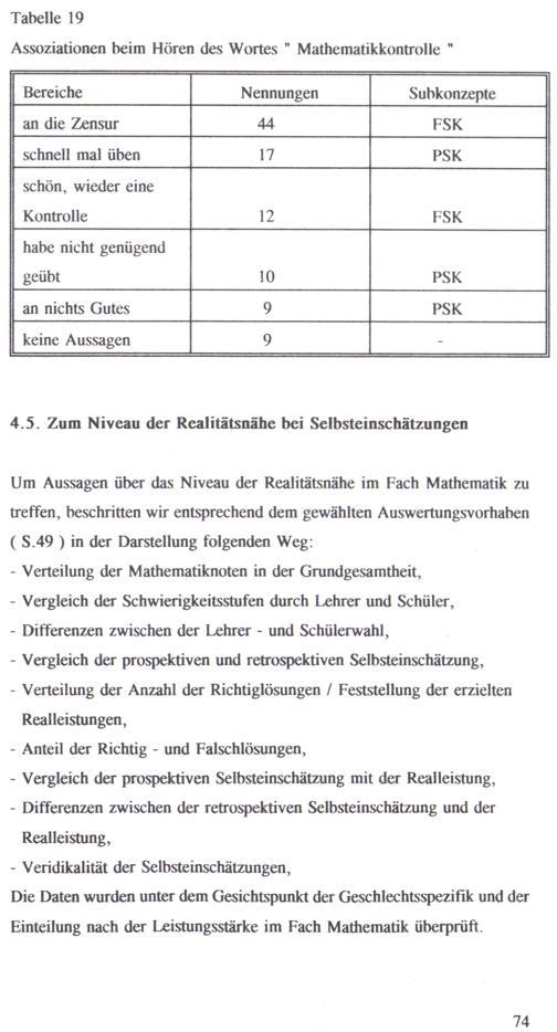 4.5. Zum Niveau der Realitätsnähe bei Selbsteinschätzungen