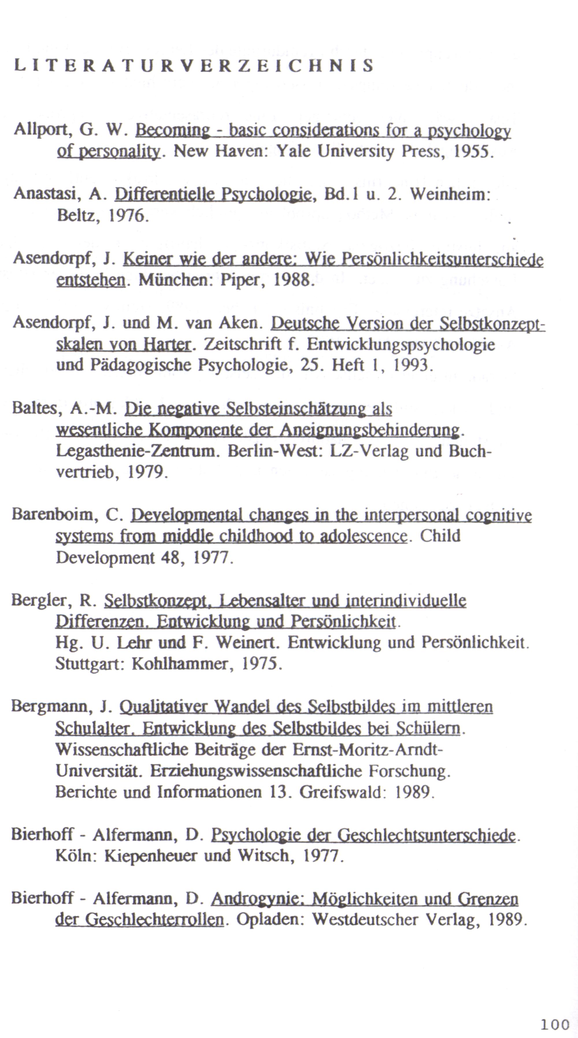 Bergmann, J. Qualitativer Wandel des Selbstbildes im mittleren Wissenschaftliche Beiträge der Ernst-Moritz- ArndtUniversität. Erziehungswissenschaftliche Forschung. Berichte und Informationen 13. Greifswald: 1989.