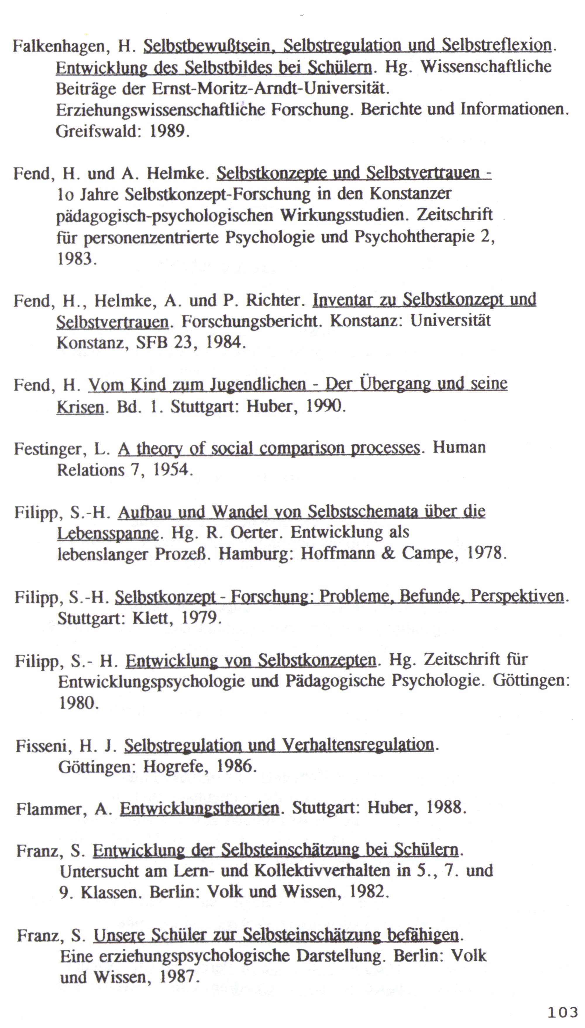 Fend, H. und A. Helmke. Selbstkonzepte und Selbstvertrauen 10 Jahre Selbstkonzept-Forschung in den Konstanzer