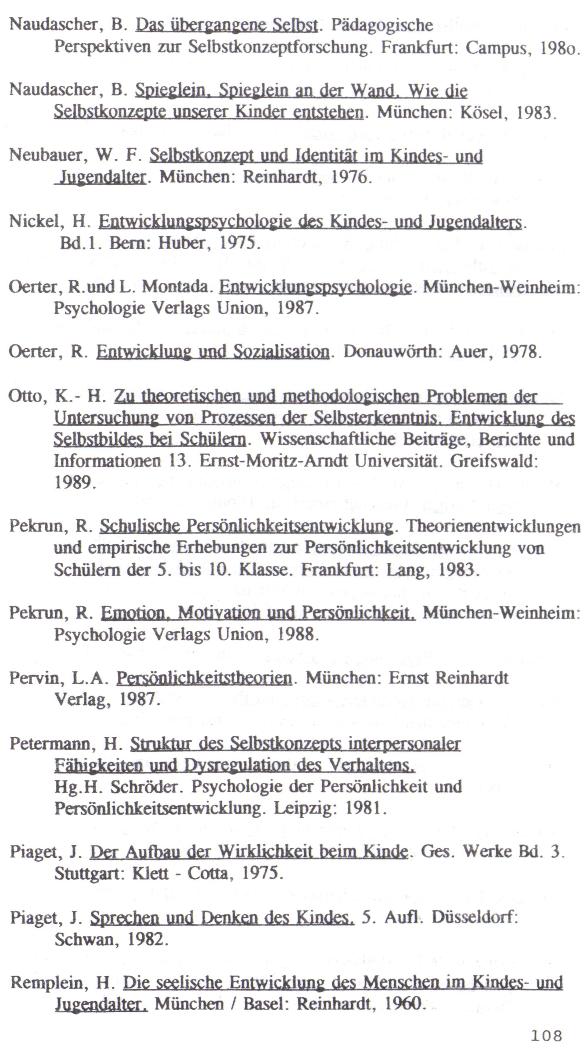 Naudascher, B. Das übergangene Selbst. Pädagogische Perspektiven zur Selbstkonzeptforschung. Frankfurt: Campus, 1980.