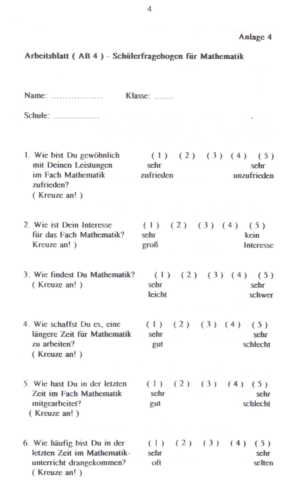 Arbeitsblatt( AB 4)- Schülerfragebogen für Mathematik