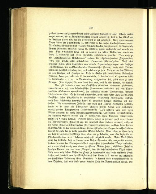Dies gilt besonders von den Laufkäfern (Onrabus violuoeus, ^Mbrulns, enneellntns u. a.), dem Lederlaufkäfer Wroerustos oorwrius) und dem Kletterlaufkäfer (Onlosowu 8 V 60 p 1 ,nntn), der tatsächlich manche Nonnenraupe, manchen Kiefernspinner tötet. Es sei darauf hingewiesen, ebenso wie dieser schöne große grüne Laufkäfer, dessen Flügeldecken in prachtvollem rotgoldenen Kupferglanze leuchten, auch seine sechsbeinige schwarze Larve die genannten Raupen überfallen und ausfressen. Als raupentötende Insekten kann man auch Wanzen beobachten (Oiwex), sowie die in ihnen als Schmarotzer lebenden winzig kleinen oder verhältnismäßig großen Schlupfwespen (lelmonwonkw). Von letzteren seien nebst ihren Wirten genannt: die große Kiefernraupenschlupfwespe h^nomulon oironwklexnw), die kleineren Opbion Intens und O. rnercknrlns, sowie Lunekus cvwpressns, welche die Forleule befallen, klwpln mnsii, welche in geringer Zahl in der Raupe des Kiefernspinners schmarotzt und sich innerhalb ihres Kokons verpuppt, während die kleinen schwarzen Schlupfwespen fMeroKuster neinornw), nachdem sie als Larven in großer Zahl bei der genannten Raupe schmarotzt haben, als Puppen in weißen Kokons liegend die Reste des zu Tode gequälten Wirtes bedecken. Man rechnet es ihnen hoch an, daß sie zahlreiche Schädlinge töten, ohne das zu bedenken, was oben bezüglich der Gleichgewichtslage in der Lebensgemeinschaft mitgeteilt wurde. Unter Berücksichtigung der Tatsache, daß im Kampf ums Dasein Tierarten nicht ausgerottet werden, sondern in einer der Lebensgemeinschaft angepaßten schwankenden Menge auftreten, wird man ebensowenig von einem greifbaren Nutzen jener „nützlichen" Insekten sprechen können, wie von dem „Nutzen", den die insektenfressenden Vögel stiften. Sucht man nach bestem Wissen die Frage zu beantworten, was diese nützlichen Vögel fressen, und beurteilt man ihre Tätigkeit nach dem Werte, d. h. der von uns erkannten wirtschaftlichen Bedeutung ihrer Beutetiere, so kommt man notwendigerweise zu dem Ergebnis, daß auch diese genau dieselbe Rolle im Naturhaushalt spielen, wie