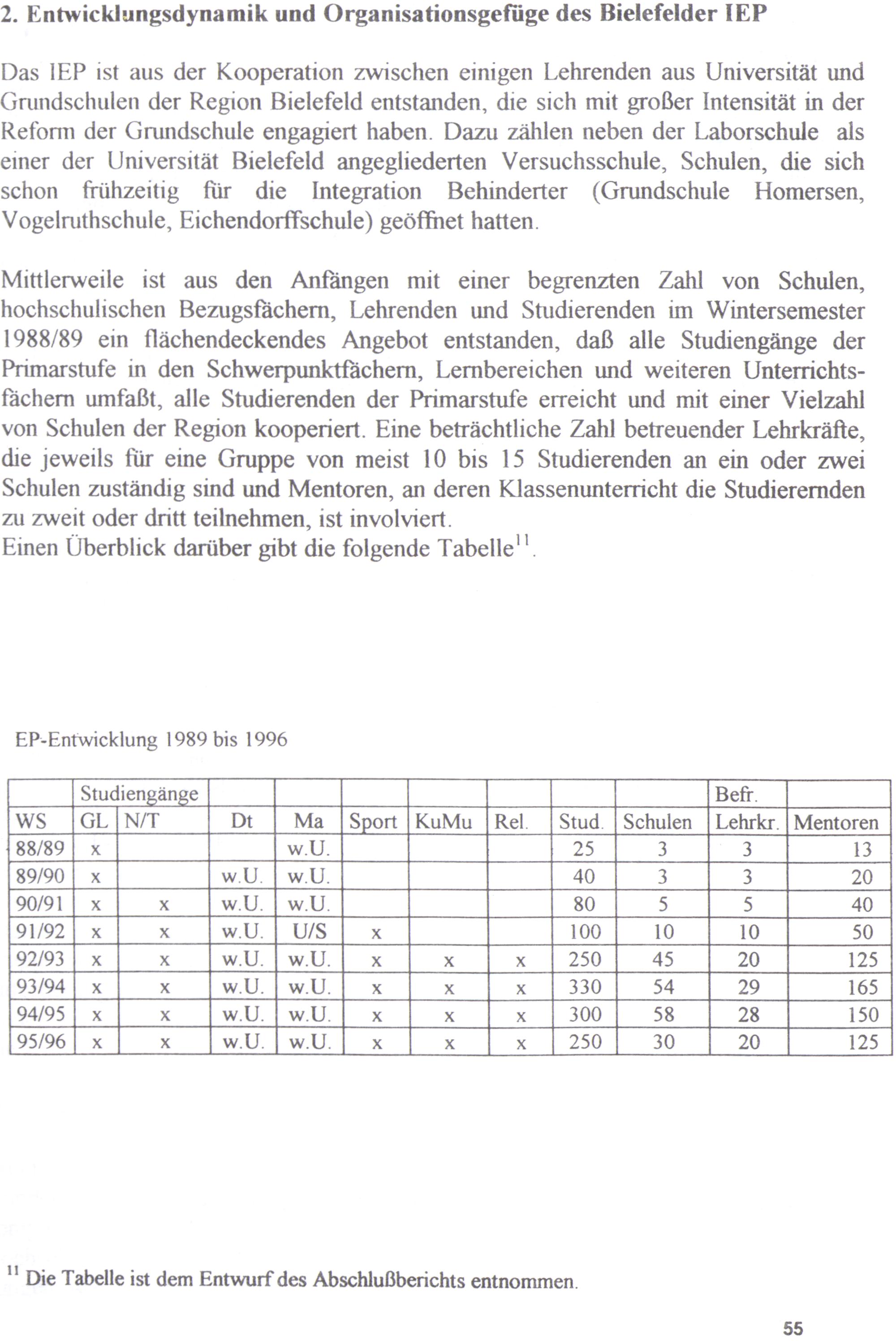 2. Entwicklungsdynamik und Organisationsgefüge des Bielefelder IEP