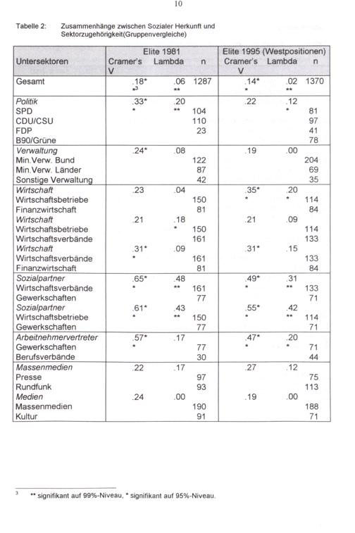 Tabelle 2: Zusammenhänge zwischen Sozialer Herkunft und Sektorzugehörigkeit(Gruppenvergleiche)