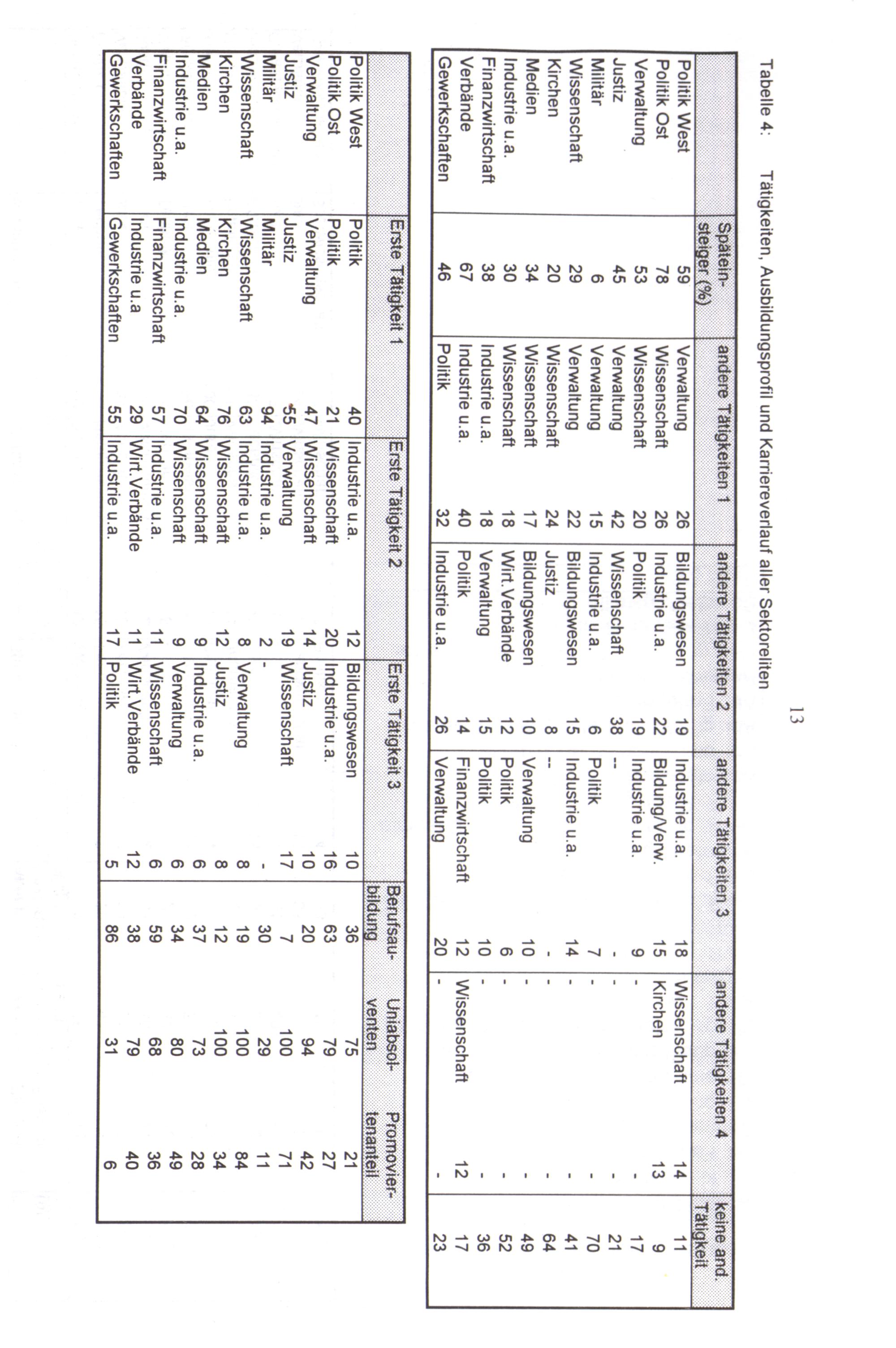 Tätigkeiten, Ausbildungsprofil und Karriereverlauf aller Sektoreliten