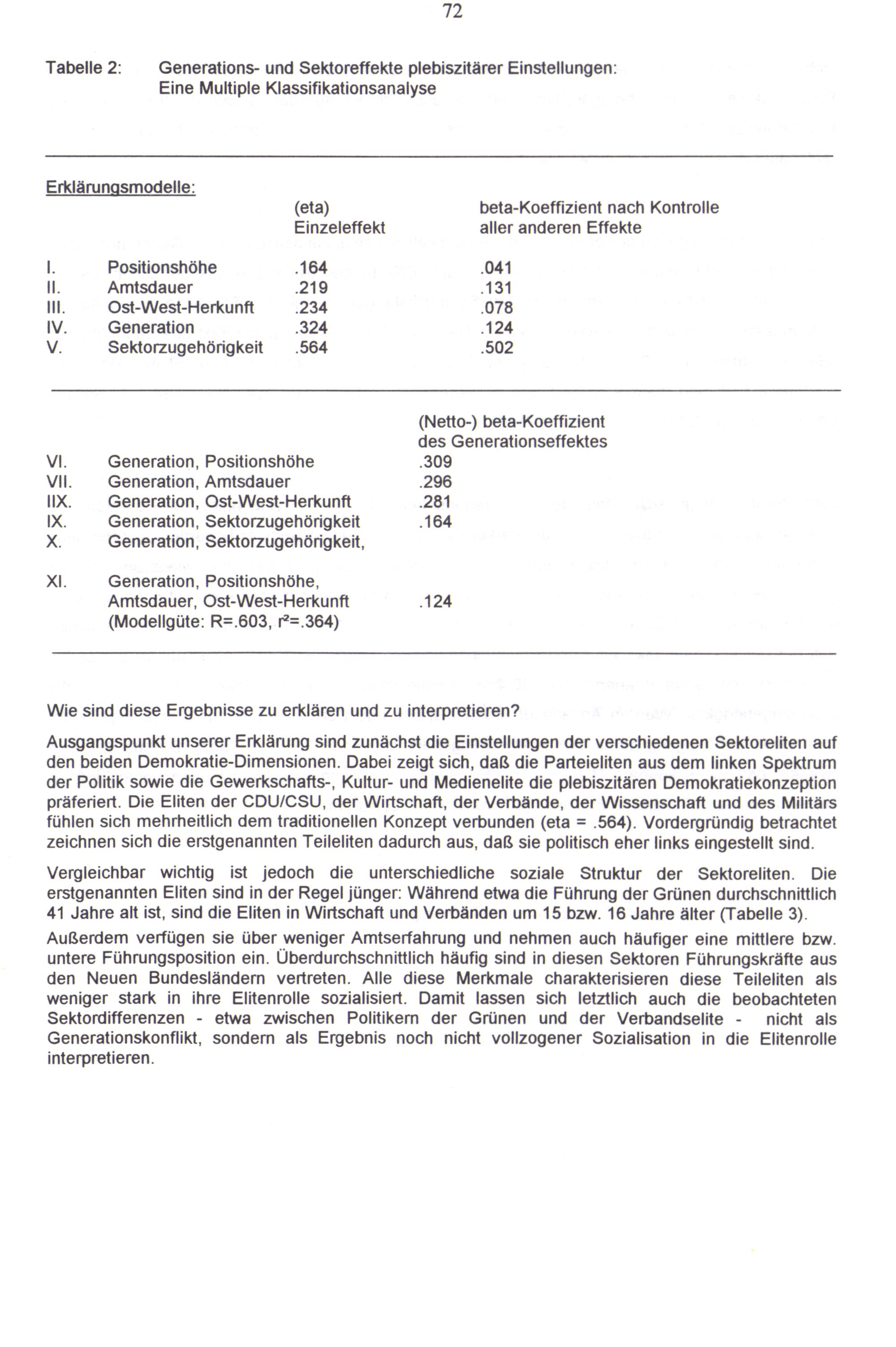 Tabelle 2: Generations- und Sektoreffekte plebiszitärer Einstellungen: Eine Multiple Klassifikationsanalyse