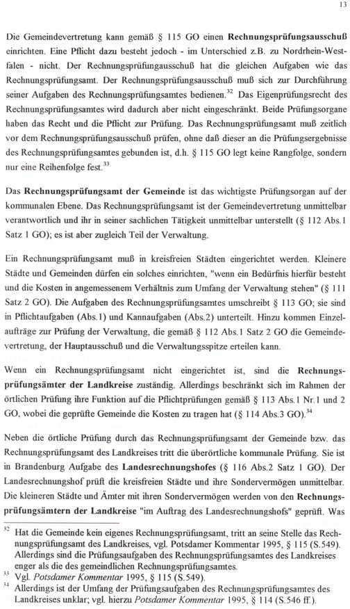 Allerdings ist der Umfang der Prüfungsaufgaben des Rechnungsprüfungsamtes des Landkreises unklar; vgl. hierzu Potsdamer Kommentar 1995, 8& 114(S.546 ff).