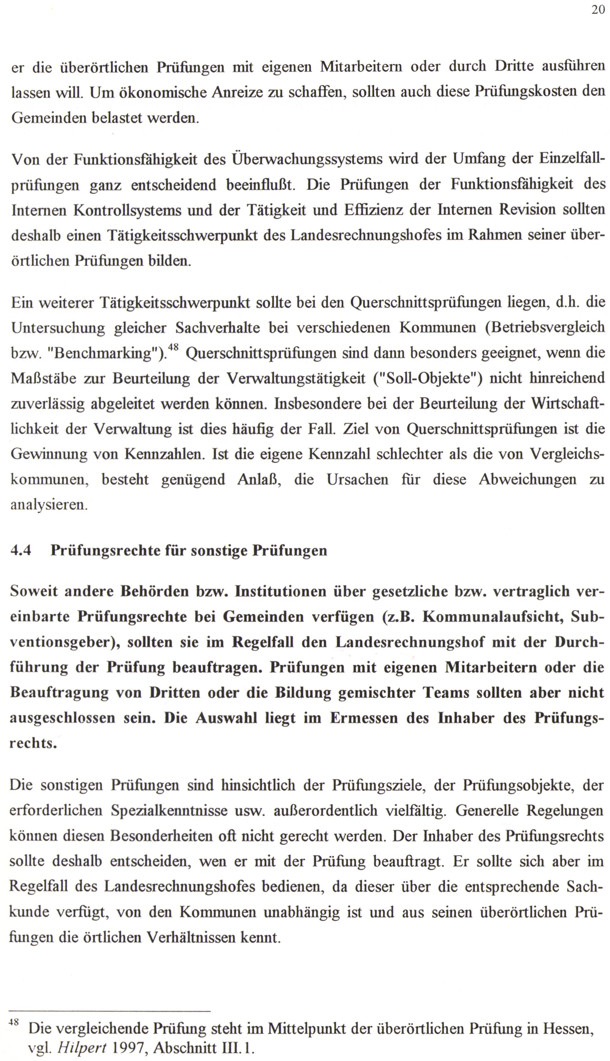 ** Die vergleichende Prüfung steht im Mittelpunkt der überörtlichen Prüfung in Hessen, vgl. Hilpert 1997, Abschnitt IL. 1.